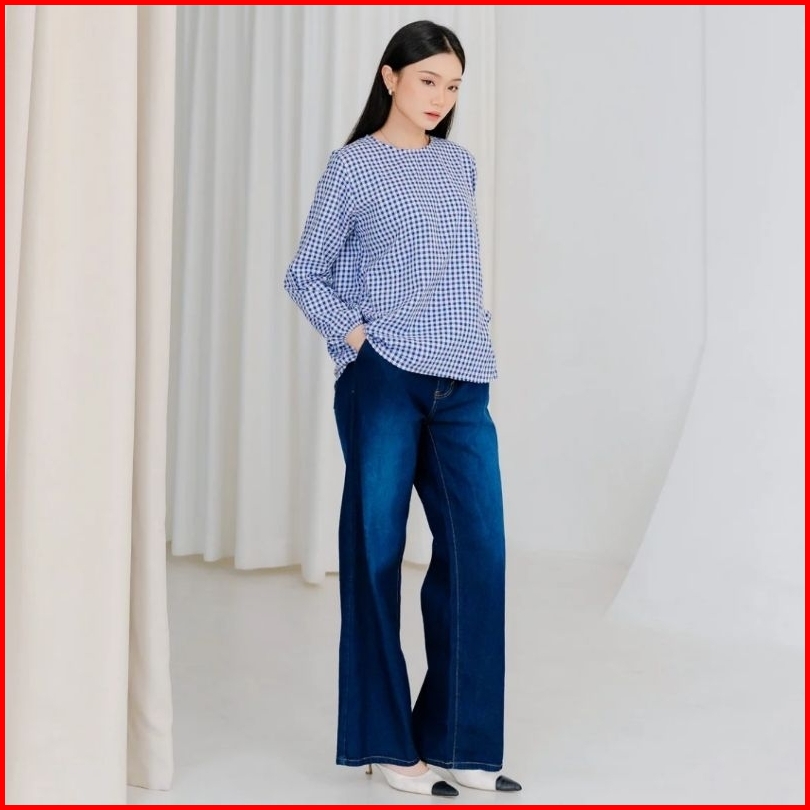 Sugi Label - Laksmi Shirt Blouse Kotak-kotak Panjang Lengan Karet