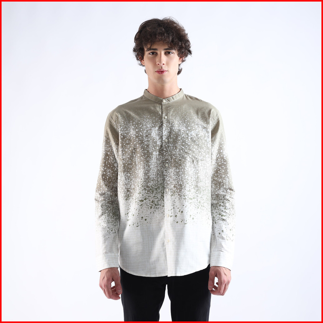Larusso Dawn Of Time - Kemeja Koko Printing Pria Lengan Panjang - Qilty