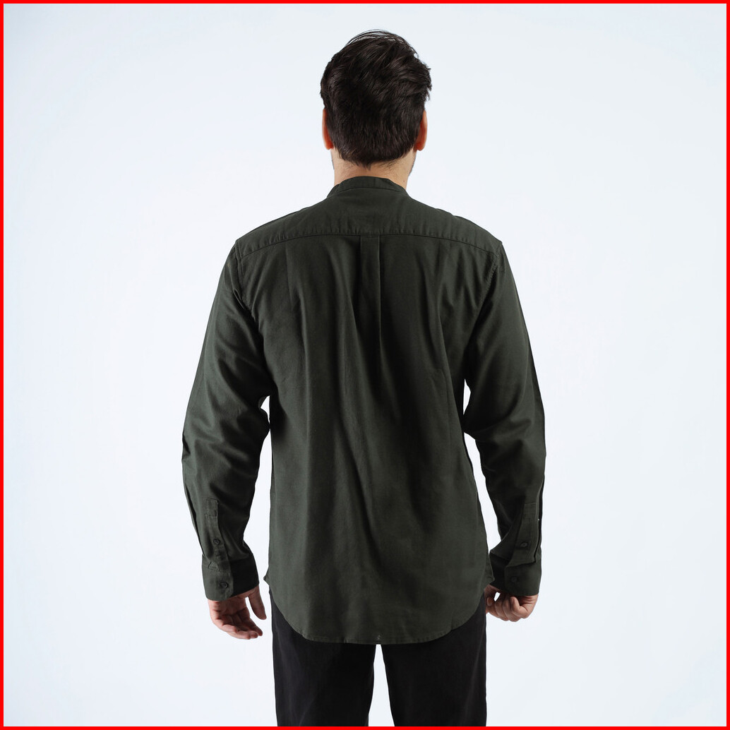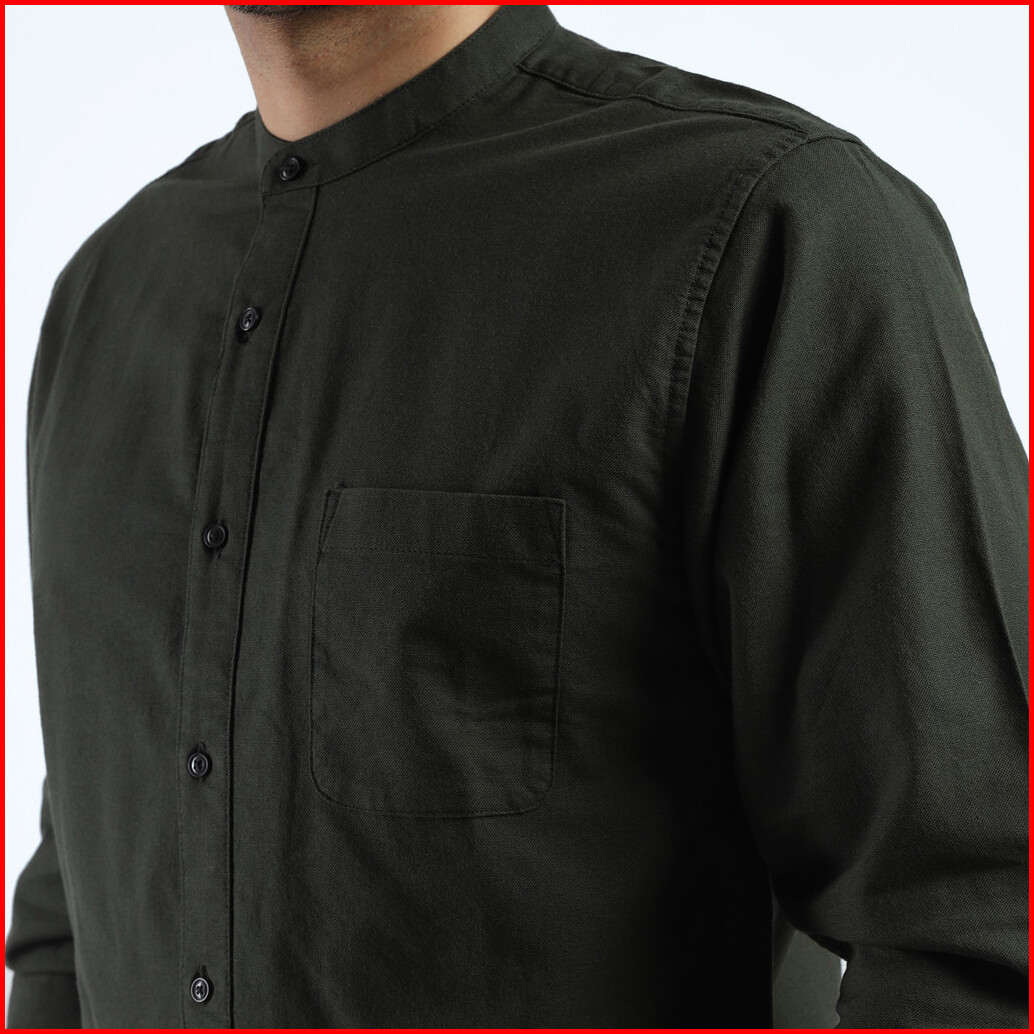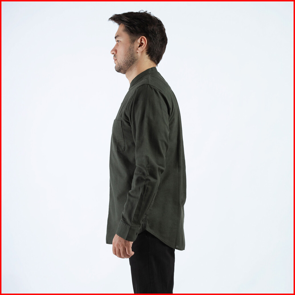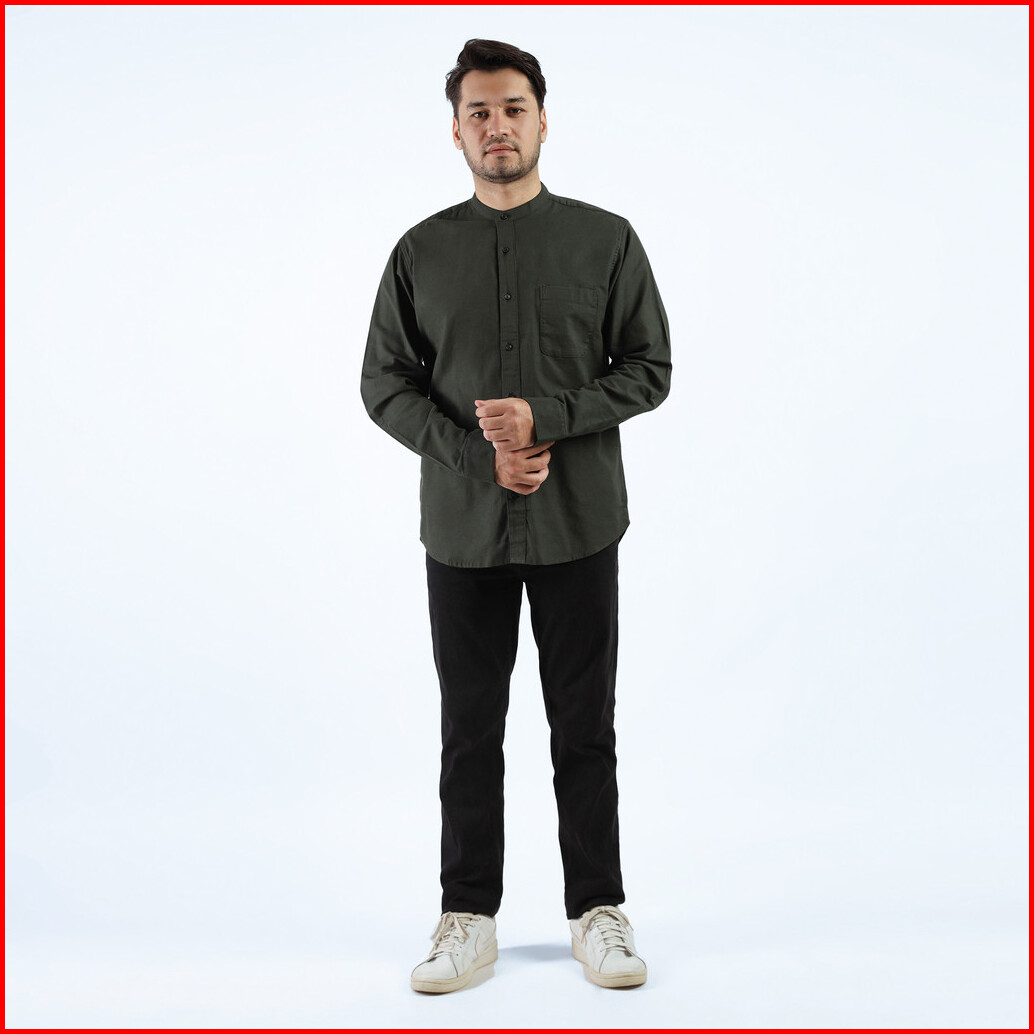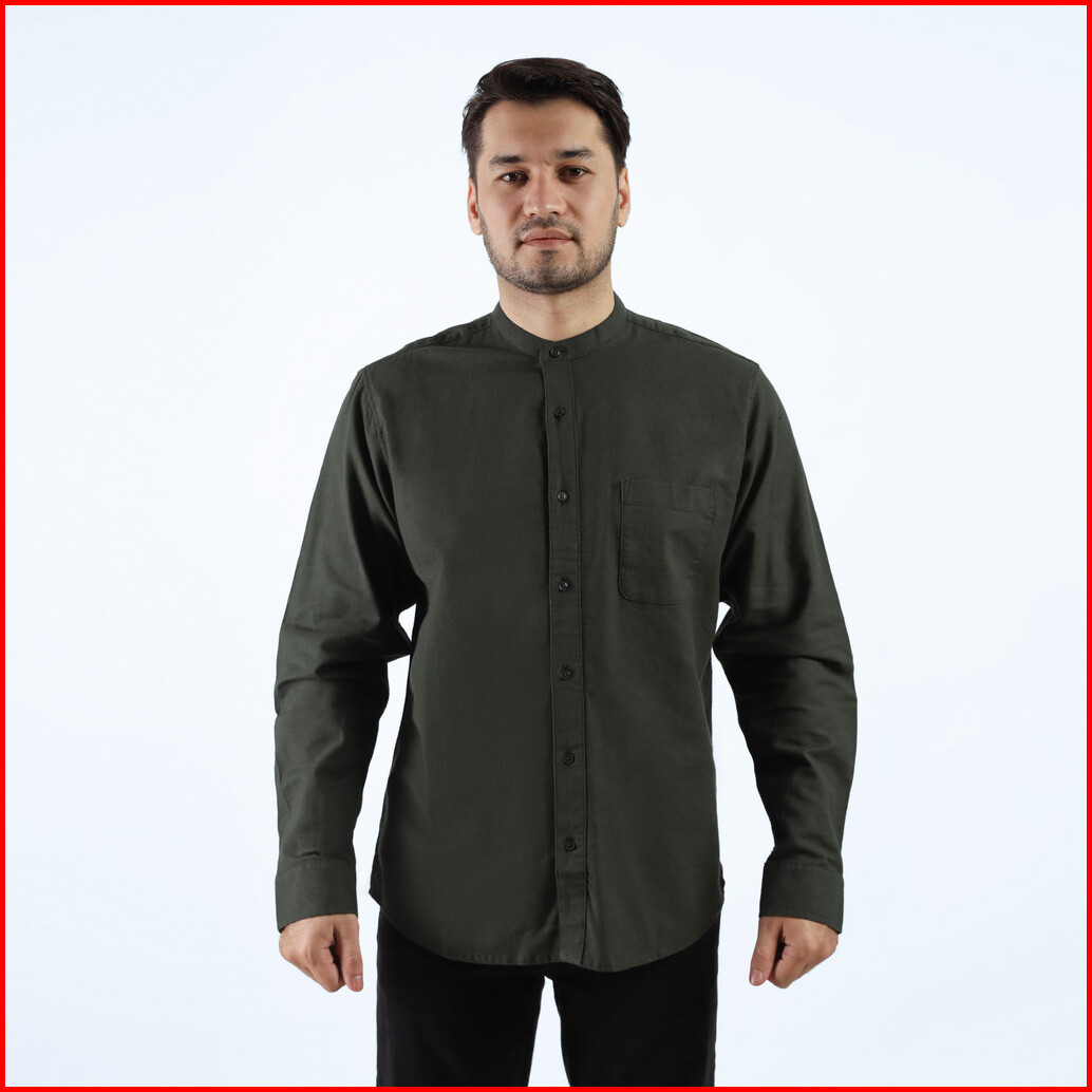Larusso Khair Collection - Kemeja Koko Rami Basic Polos Pria Lengan Panjang - Hijau Botol