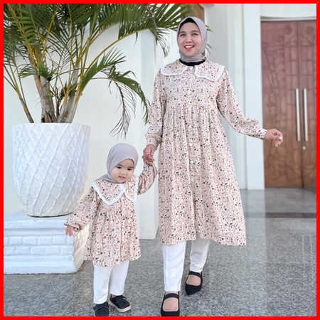 Kalsandfrey Hannah Tunik Couple Mom And Kids Baju Kembar Mama Anak Perempuan Bahan Premium Sarimbit