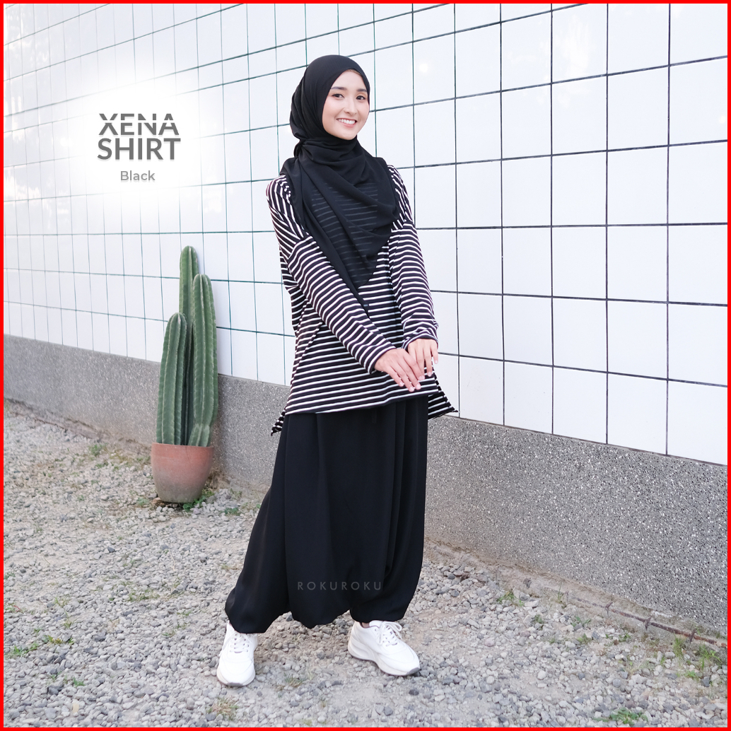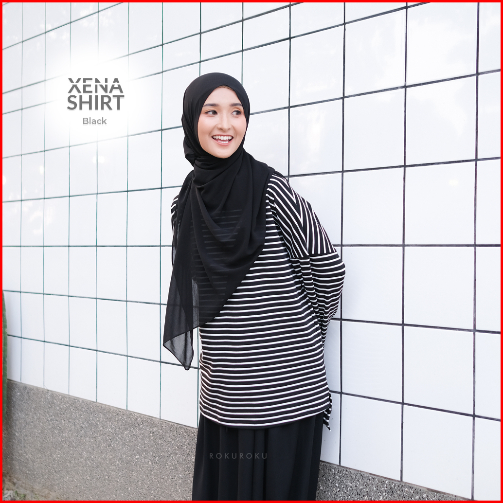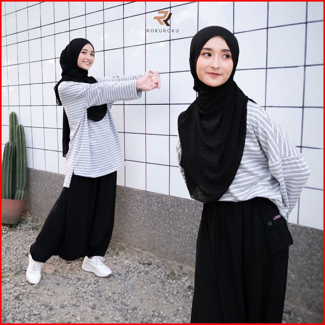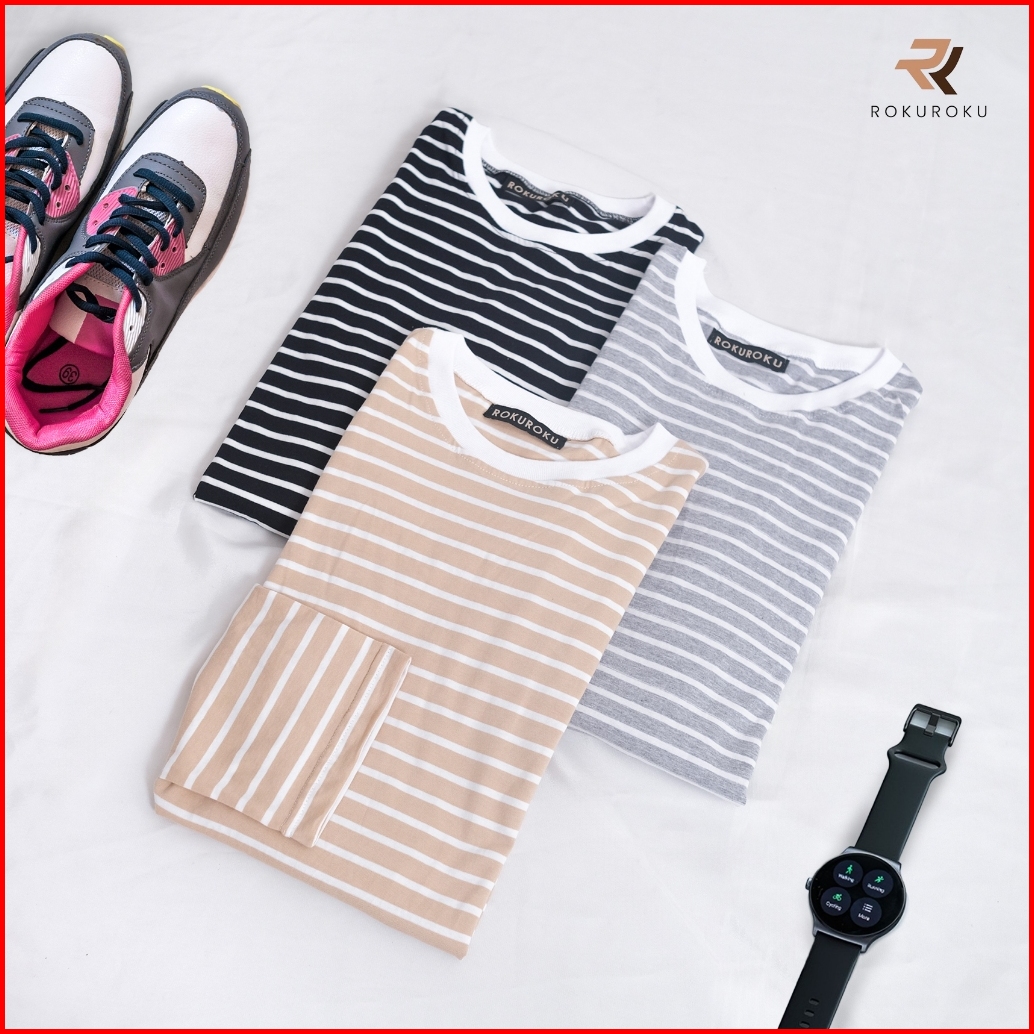 Rokuroku.id Xena Shirt - Baju Olahraga Atasan Wanita Kaos Stripe Salur Lengan Panjang All Size