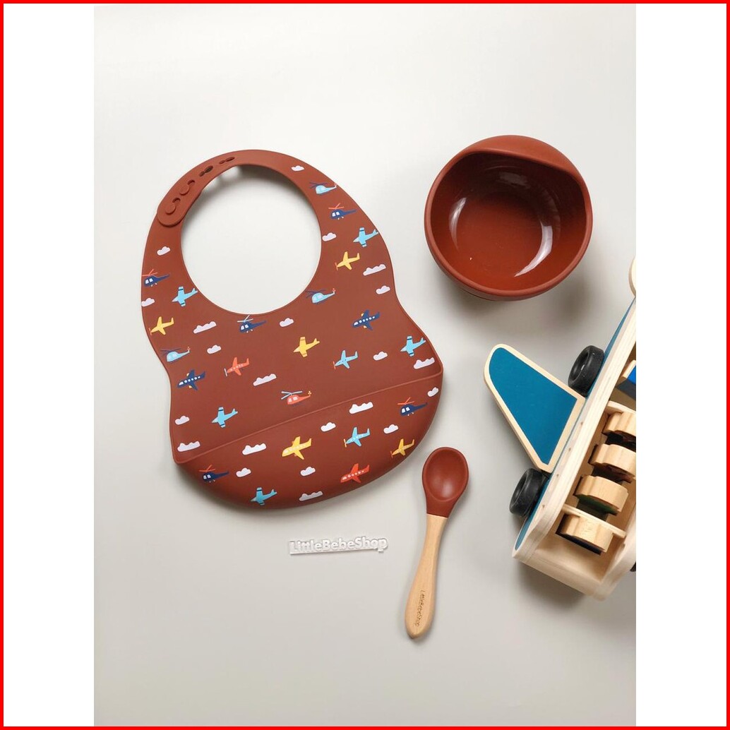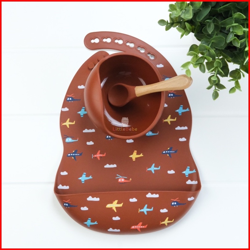 Littlebebeshop Peralatan Makan Anak Satu Set Mangkok Silicone-bibs Silicone-spoon Silicone