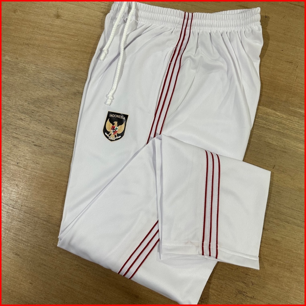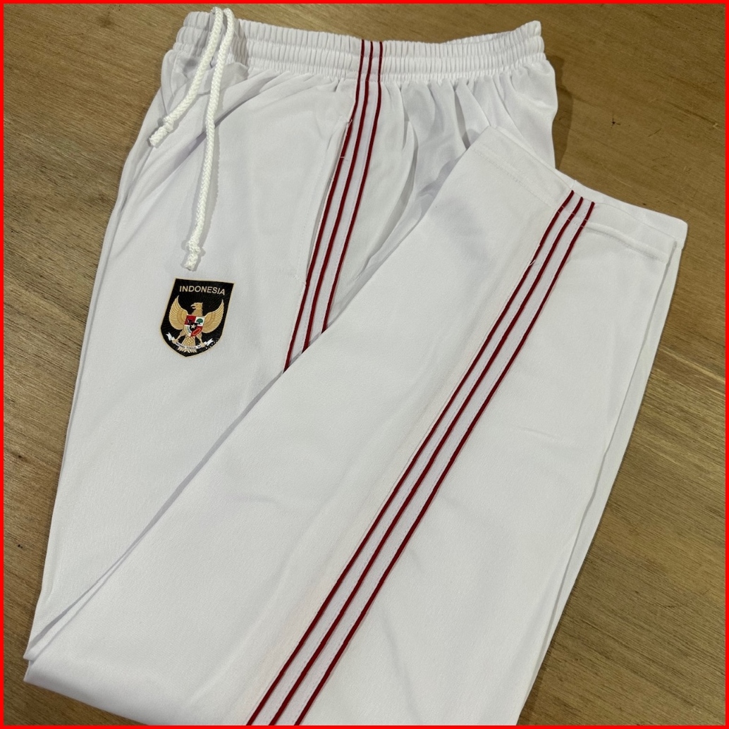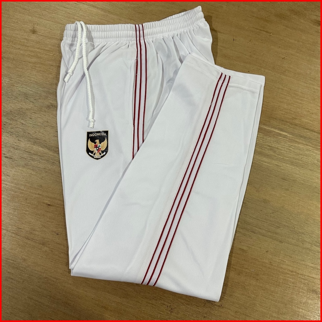 Celana Panjang Olahraga Training Indonesia Garuda Putih Variasi 3 Strip Merah Sporty Unisex