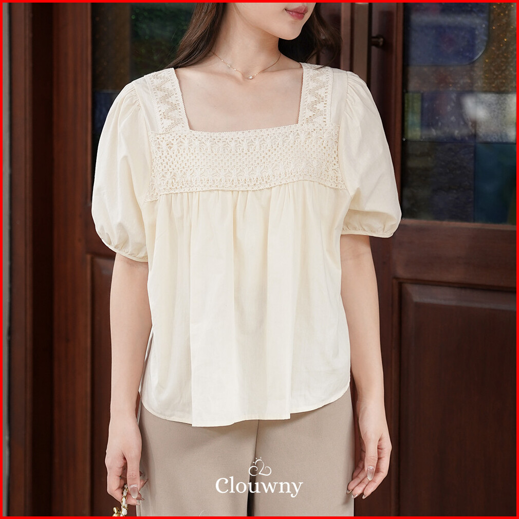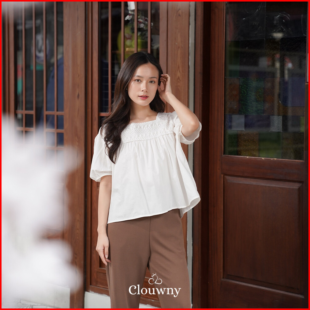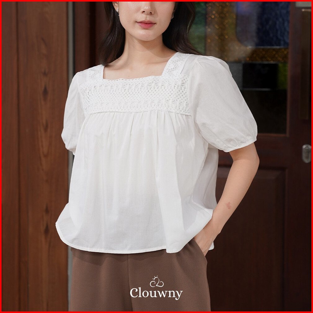 Clouwny Wila Lace Blouse Atasan Wanita Casual Premium Cotton Korean Look Fit To Xl