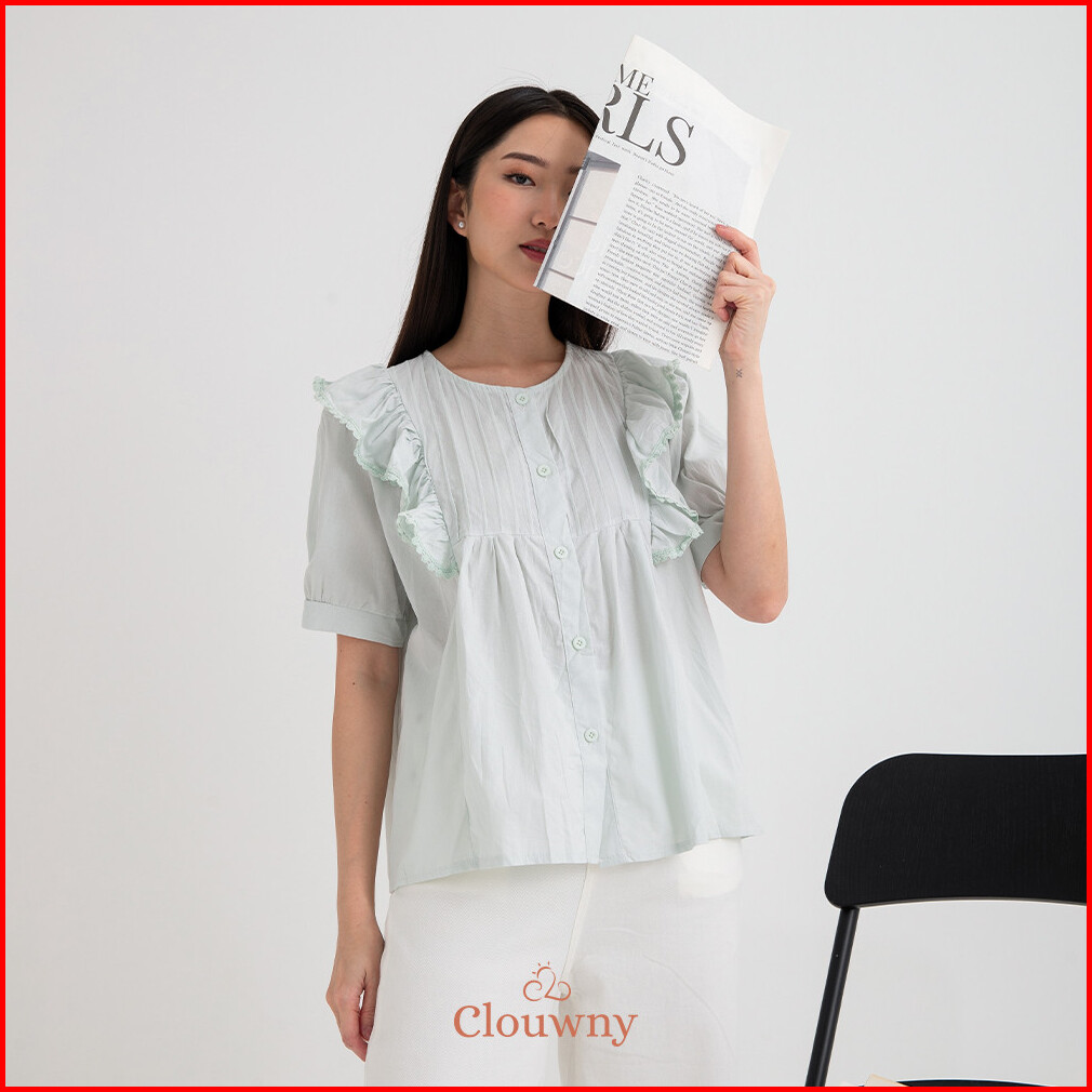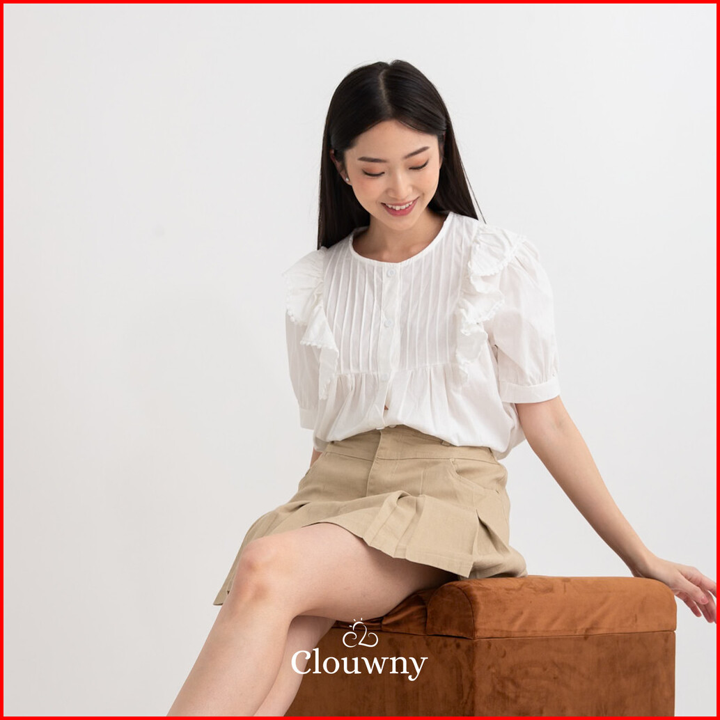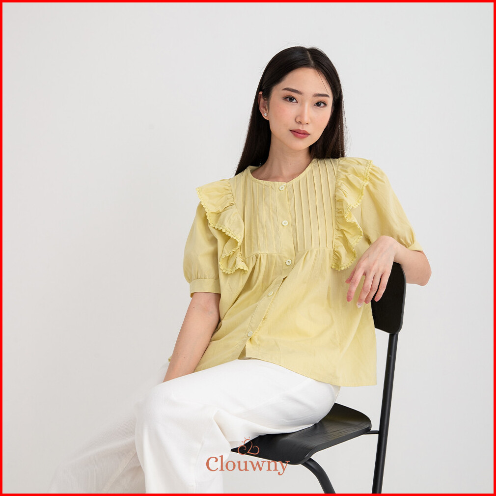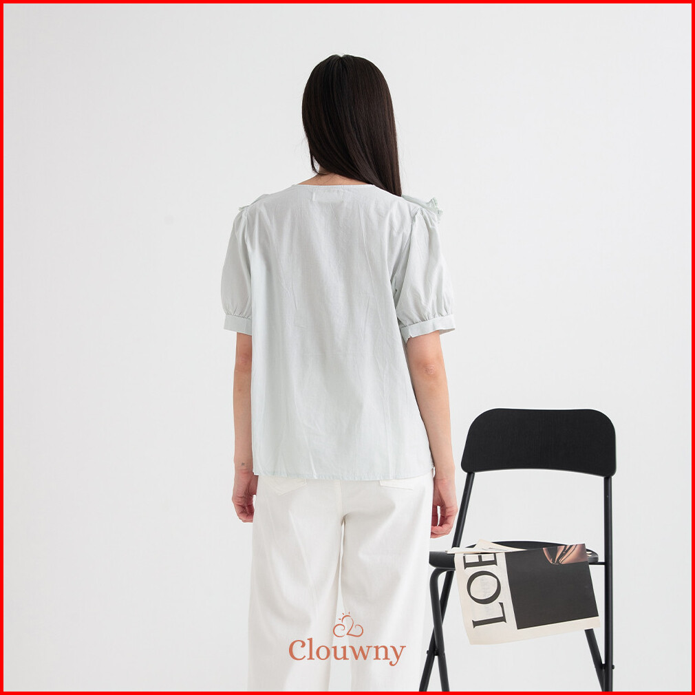 Clouwny Freny Button Top Atasan Wanita Lengan Pendek Korean Look Premium Cotton