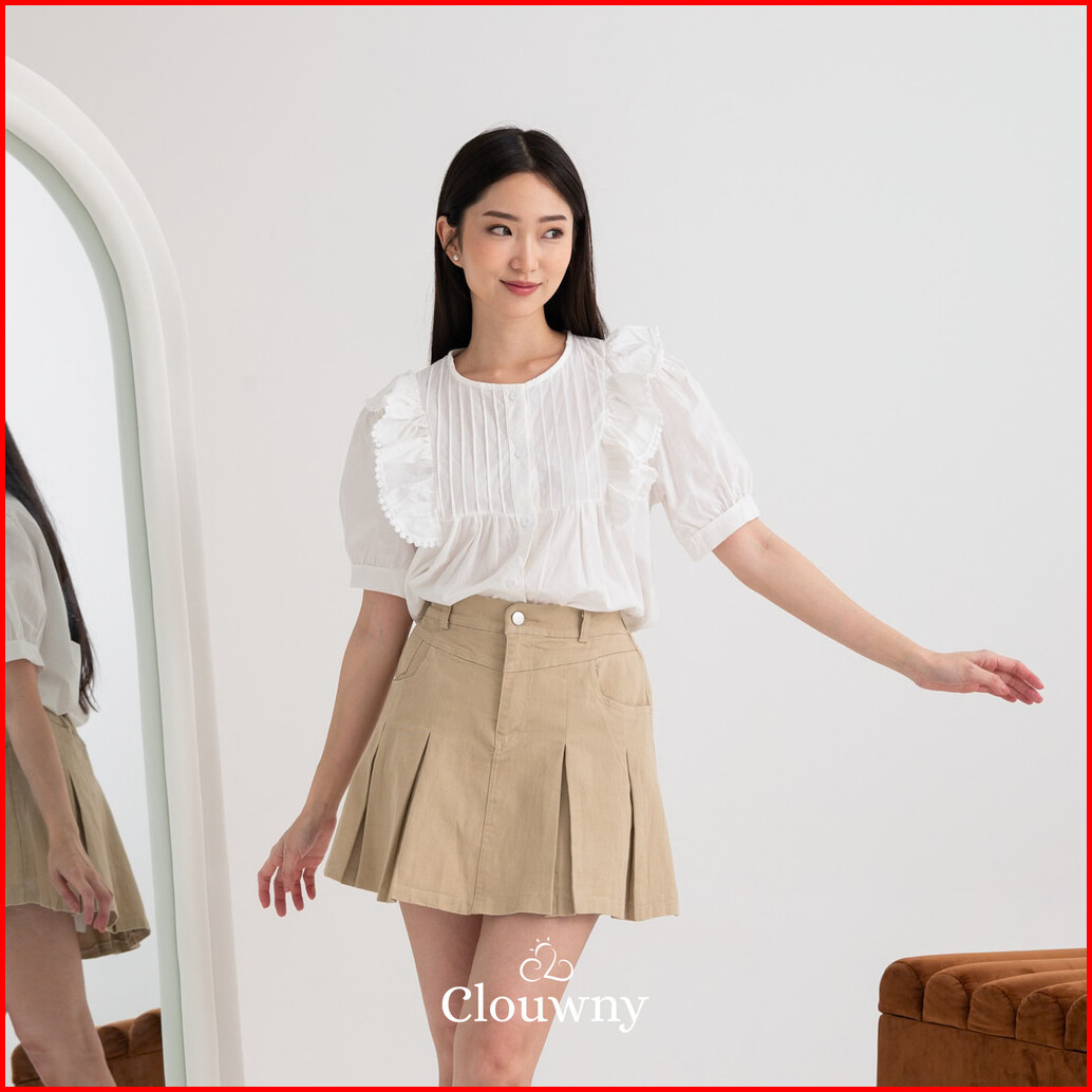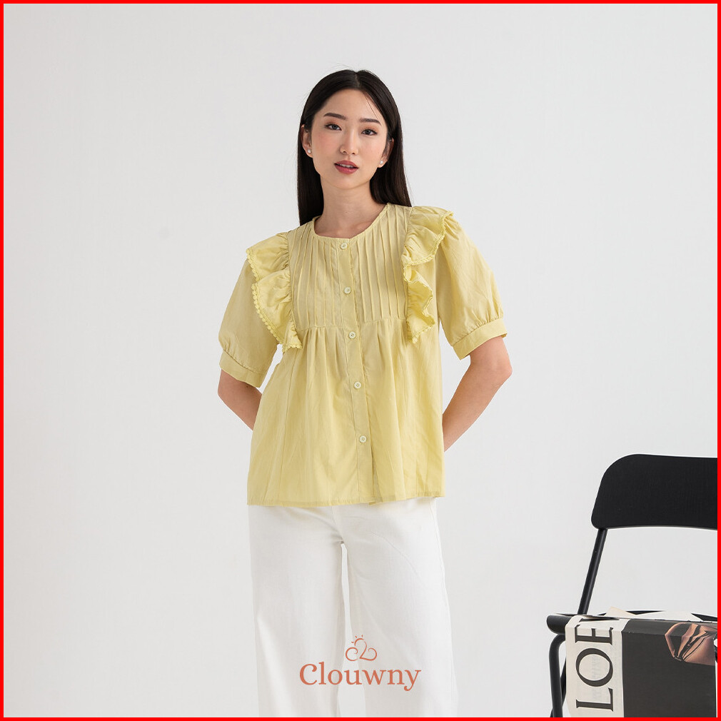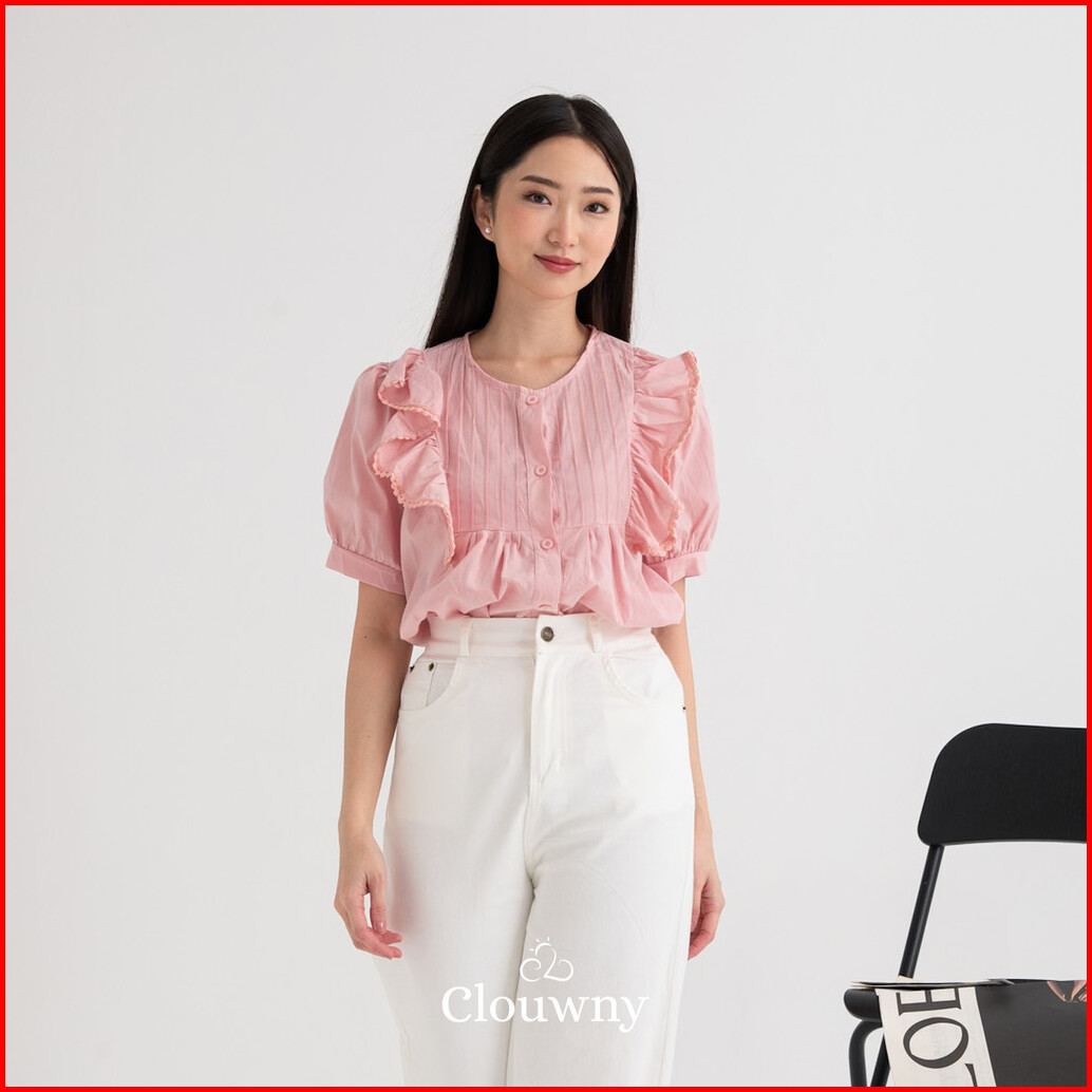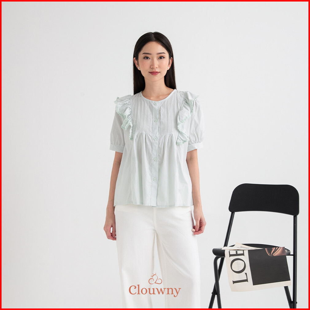 Clouwny Freny Button Top Atasan Wanita Lengan Pendek Korean Look Premium Cotton