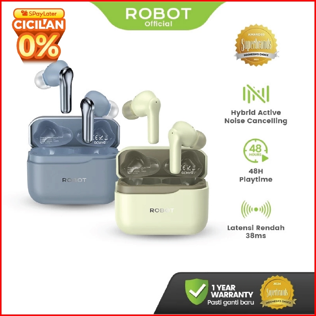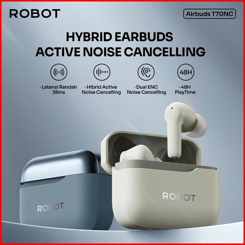 Robot Tws Earbuds Wireless Anc Enc Canceling Noise Control T70nc Bluetooth 5.4 Original - Garansi Resmi 1 Tahun
