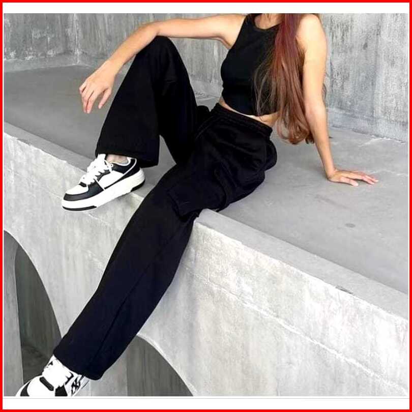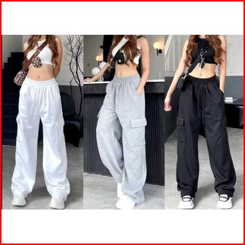 Hesclothes - Celana Jogger Sweetpants Celana Cargo Panjang Wanita Kulot Tali Serut