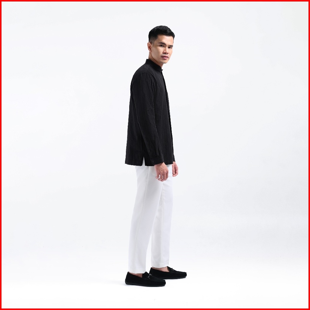 Heymale X Heylocal Keinth Textured Shirt Long Sleeve Kemeja Hitam Lengan Panjang