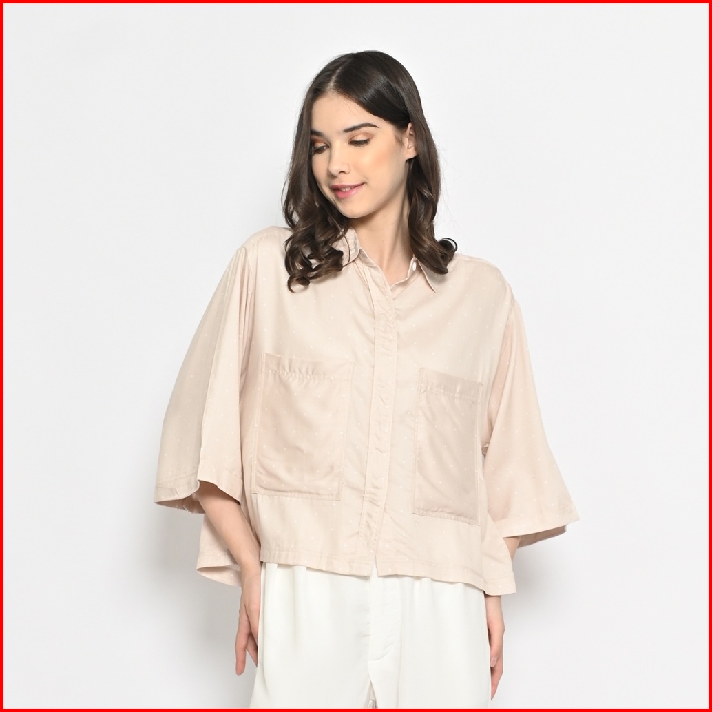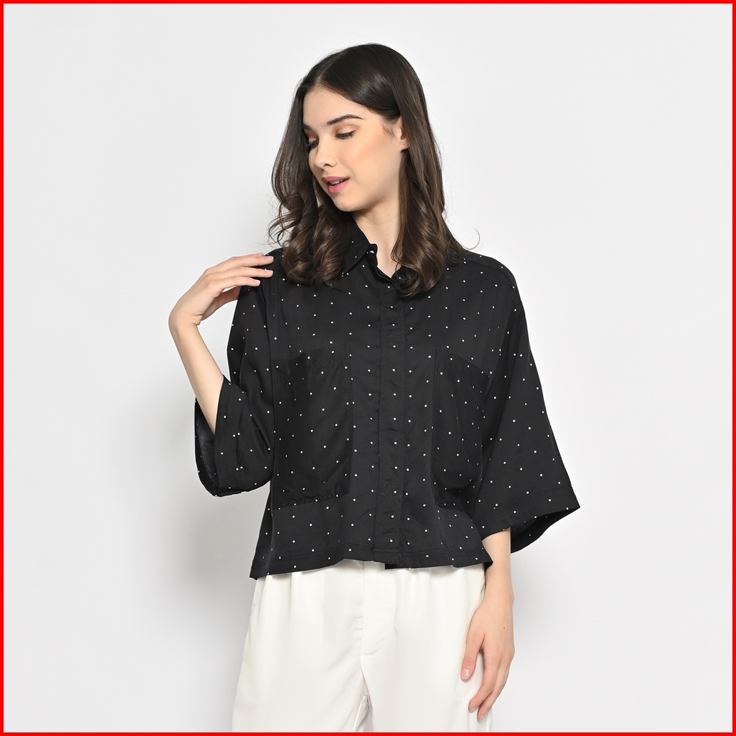 Queentin Kemeja Blouse Crop Wanita 0372 Katun Rayon Motif Polkadot Premium Lengan Panjang 3 4