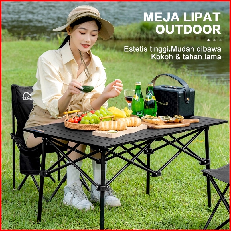 Flago Meja Lipat Outdoor Tebal Dan Tahan Aus Meja Camping Lipat Kuat Menahan Beban