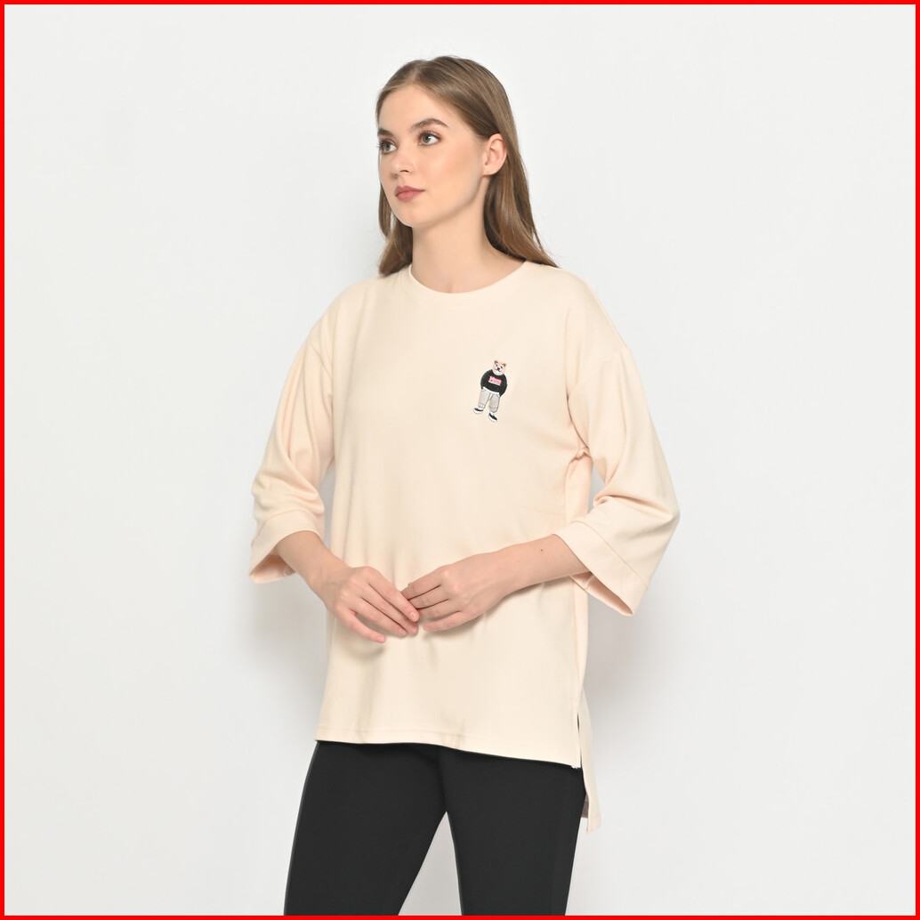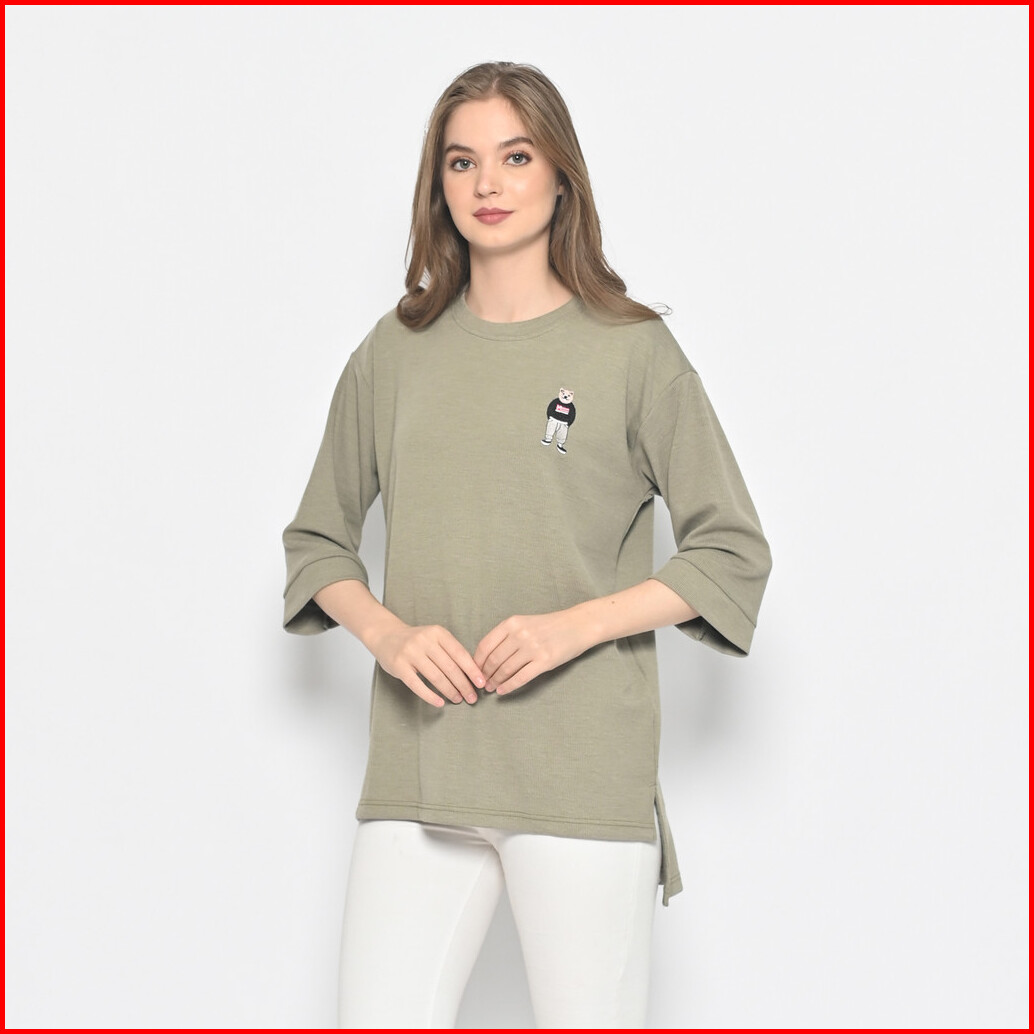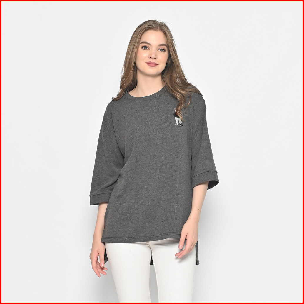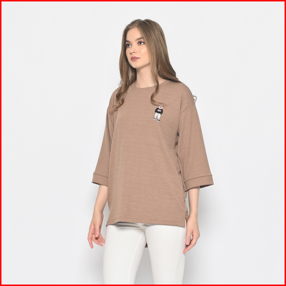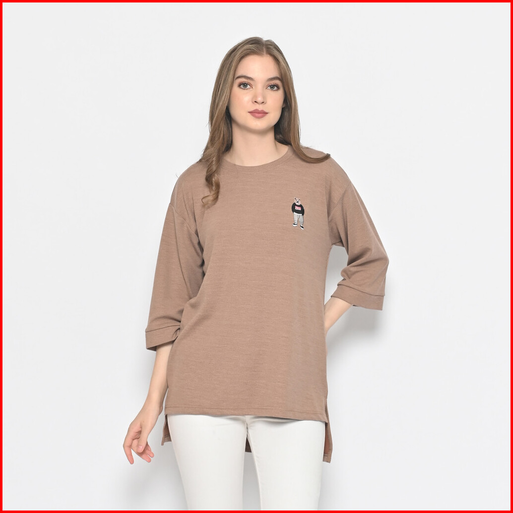 Queentin Kaos Wanita Casual 0231 Stretch Snowy Rib Knit Polos Lengan Panjang 3 4