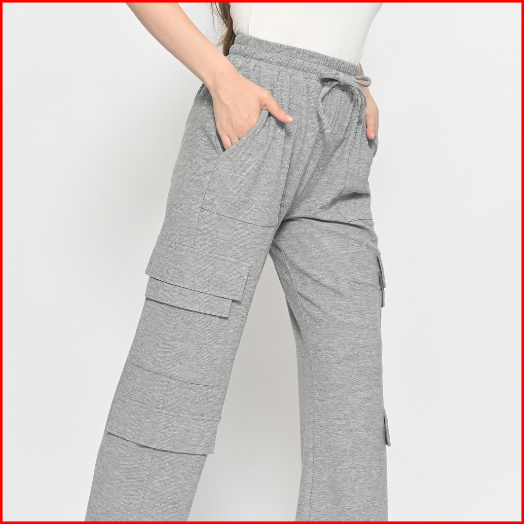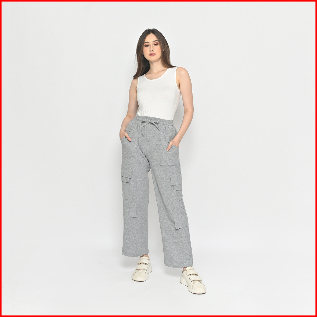 Queentin Celana Panjang Kargo Wanita 0293 Katun Maxell Polos Stretch Premium
