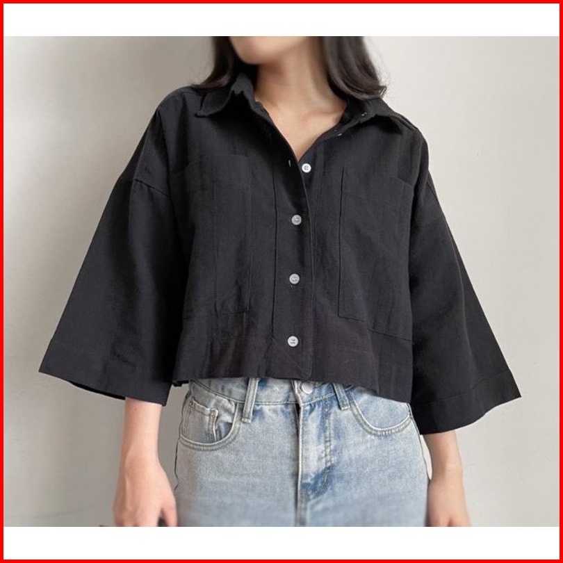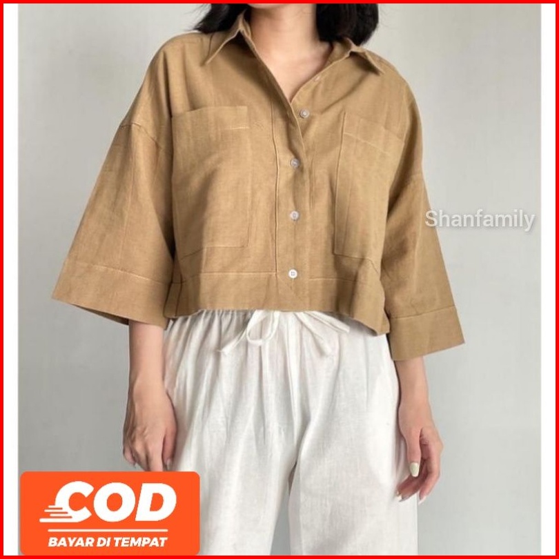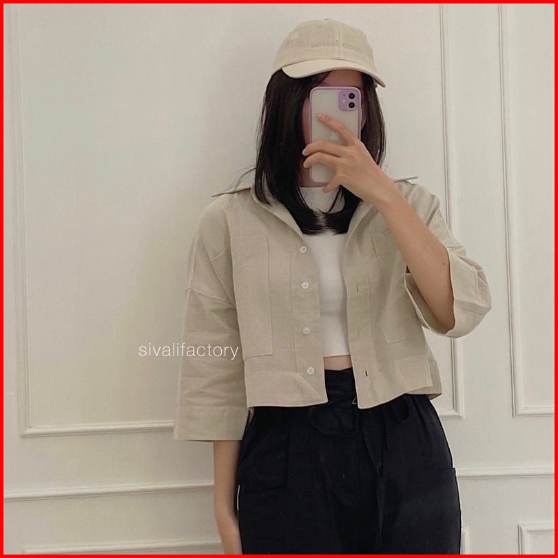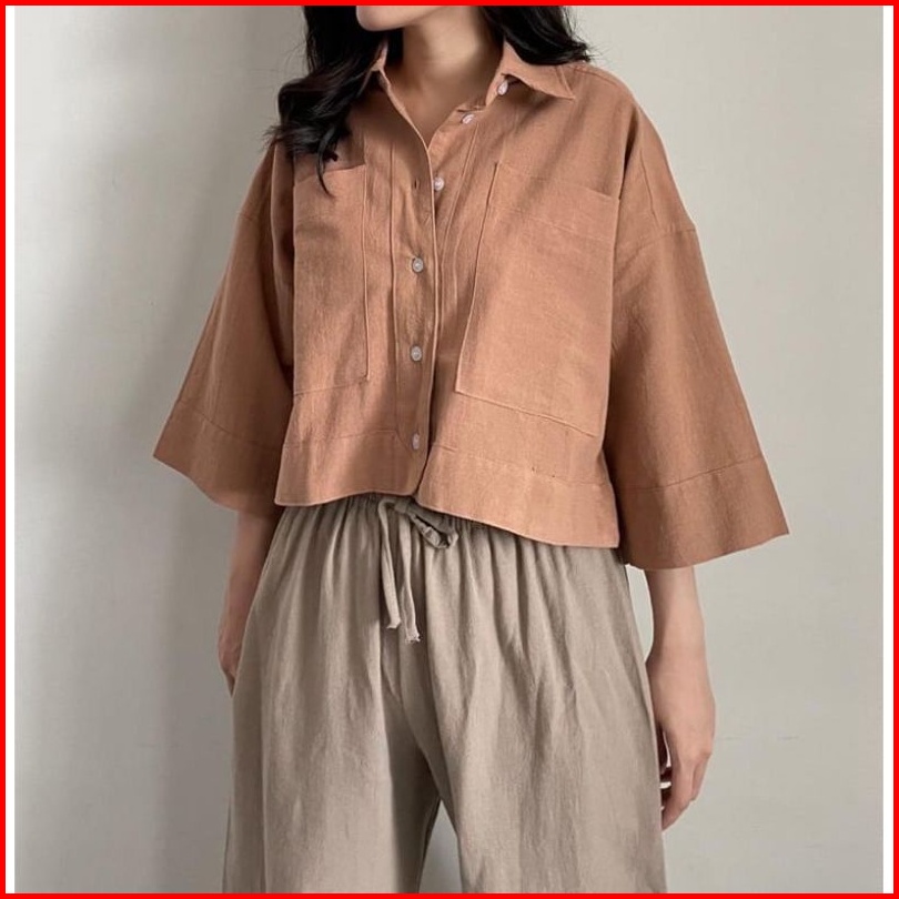 Kemeja Crop Top Linen Wanita Outer Kemeja Crop Atasan Wanita Korean Style Baju Crop