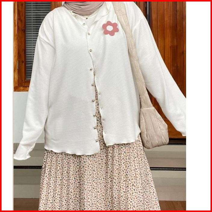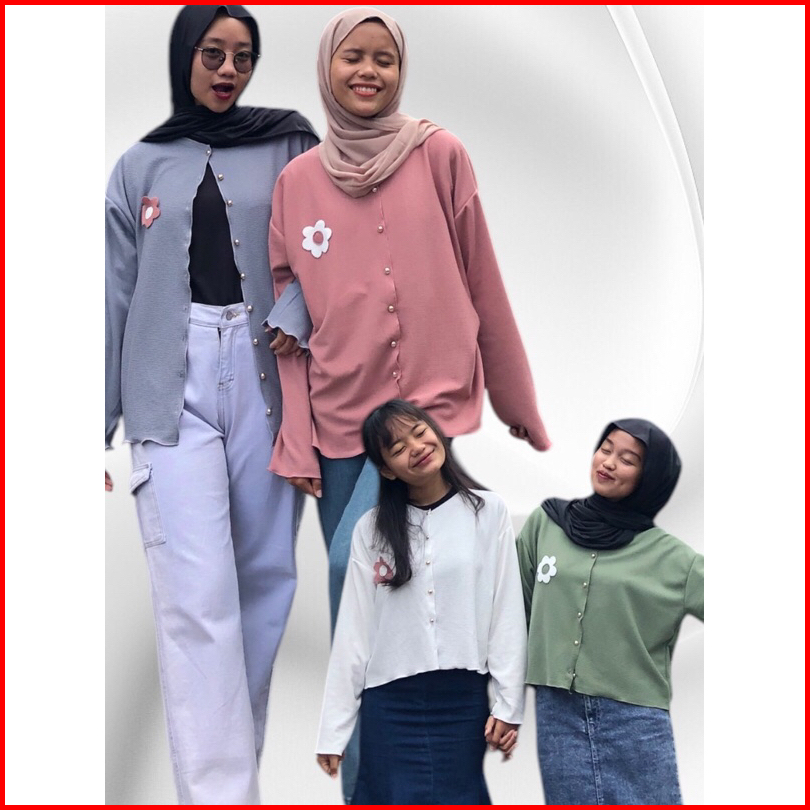 Flower Cardi Full Button Cardigan Oversize Wanita Knitwear