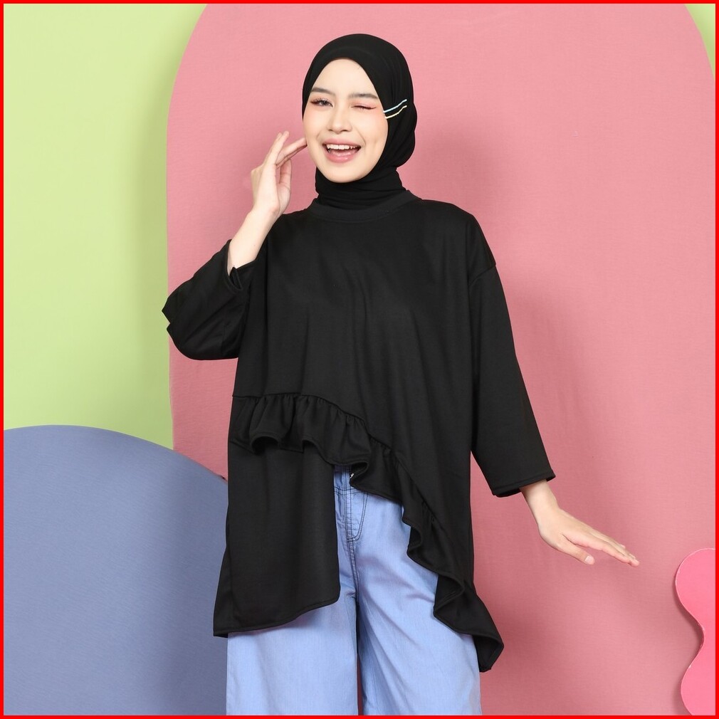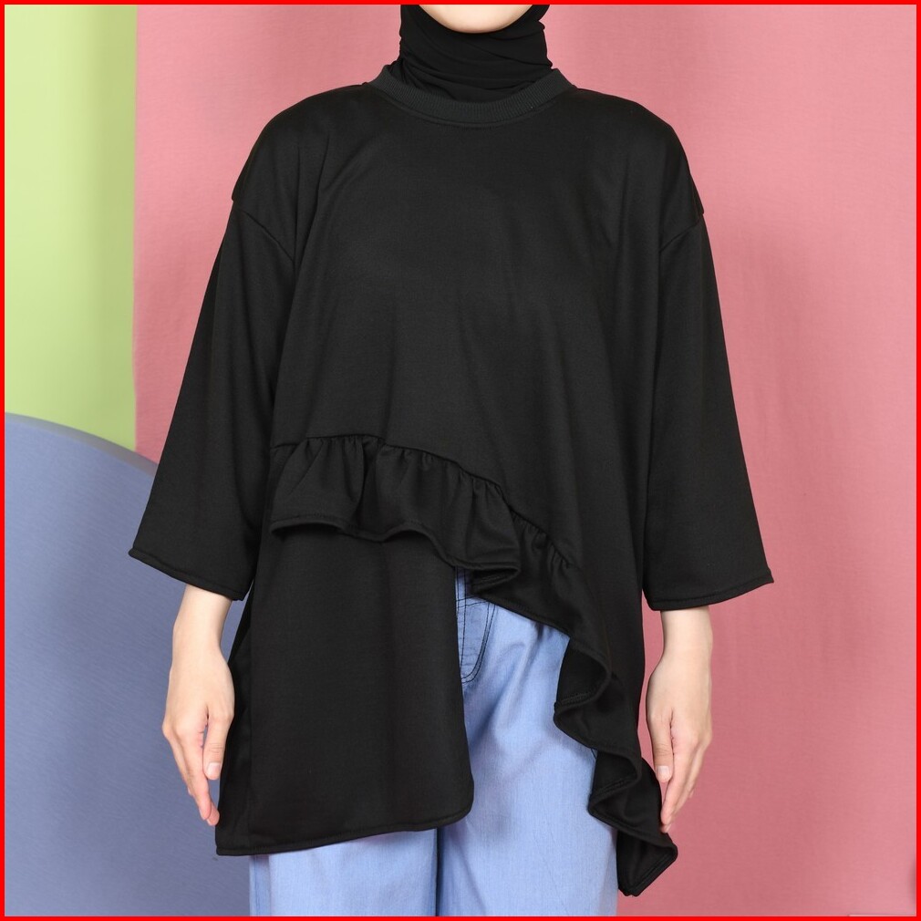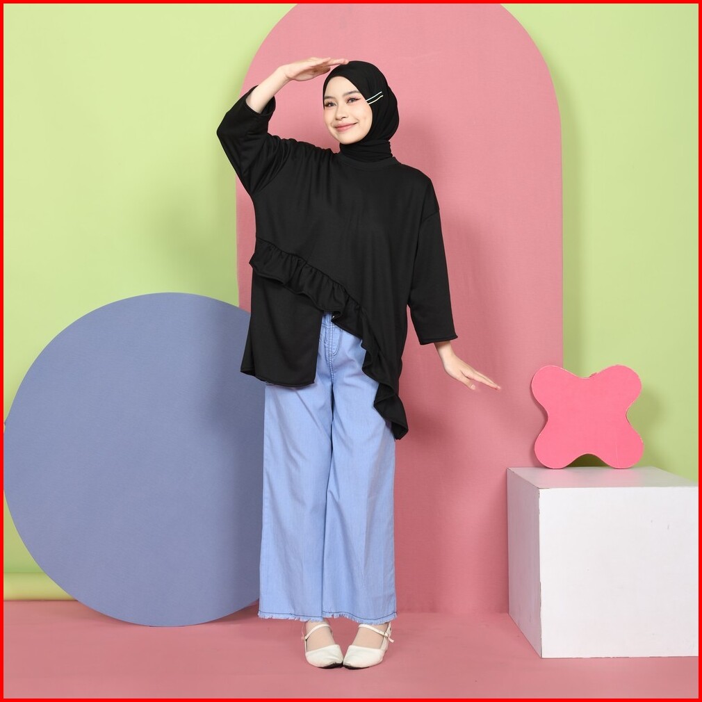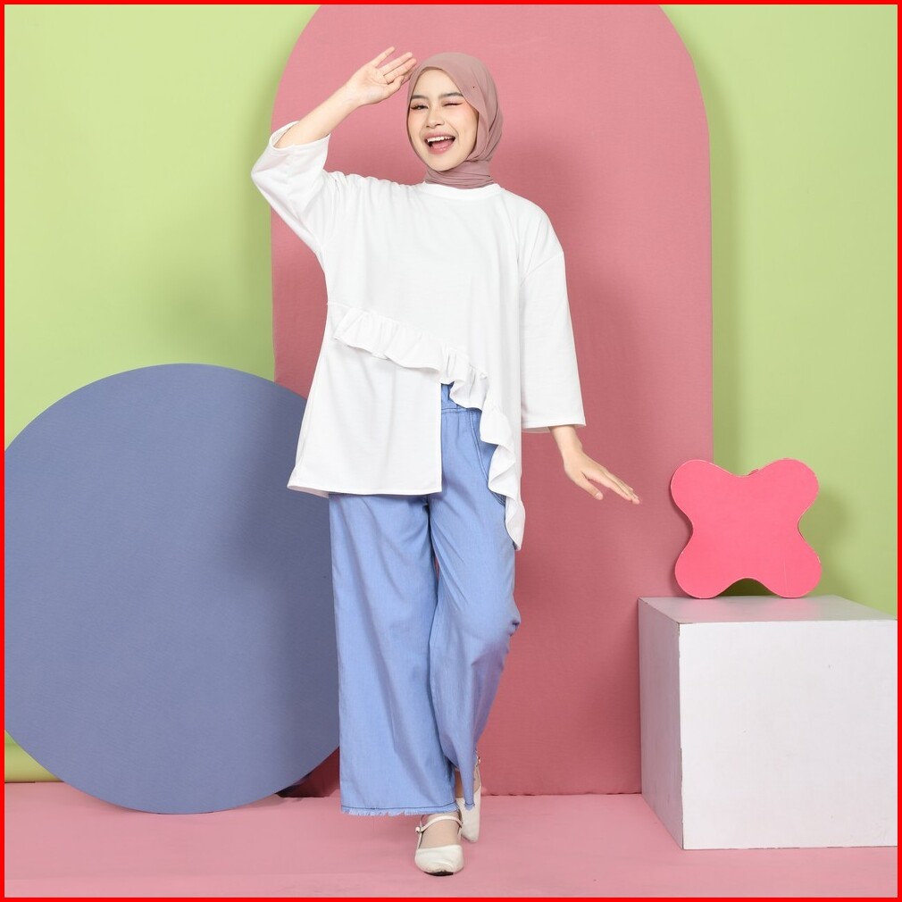 Mybamus Tasya Oversize Atasan Asymetris Denim Jeans Pants