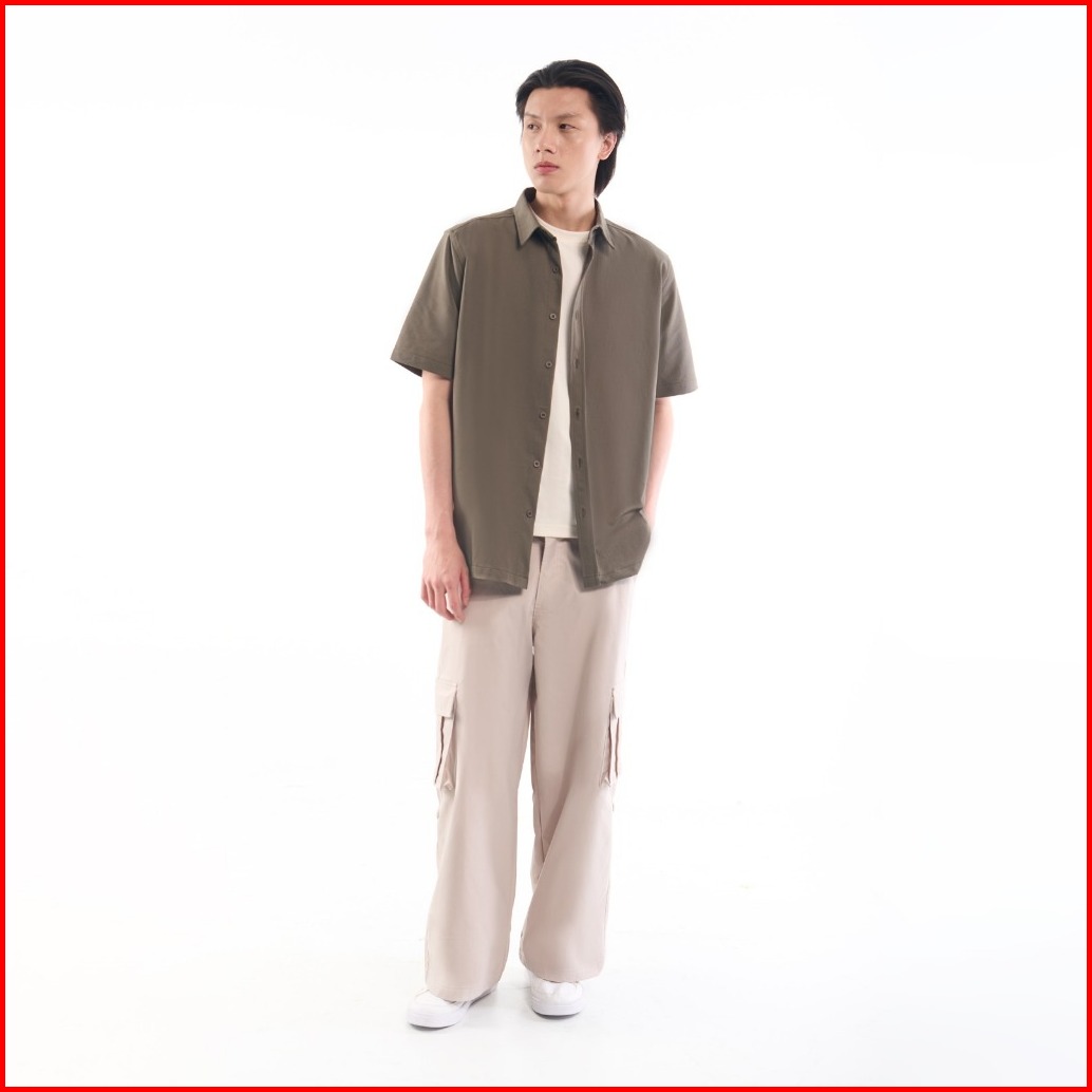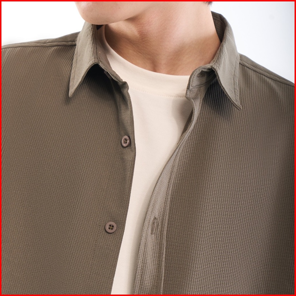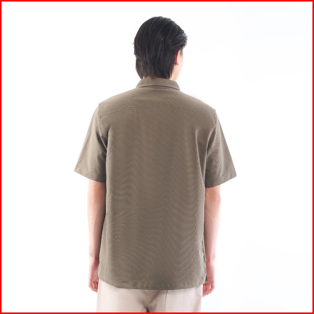 M231 Kemeja Pria Tekstur Waffle Pendek Olive 1112b