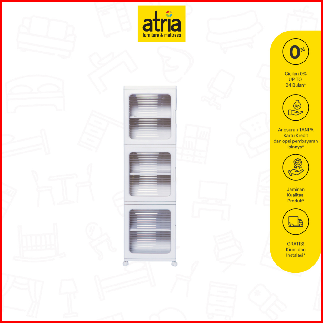 Atria June Collapsible Cabinet Lemari Penyimpanan Lipat Multifungsi 3 Tiers White