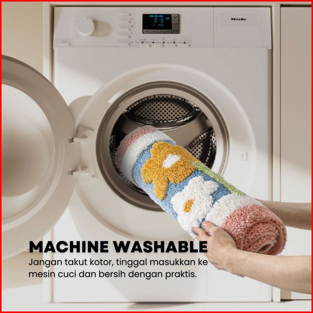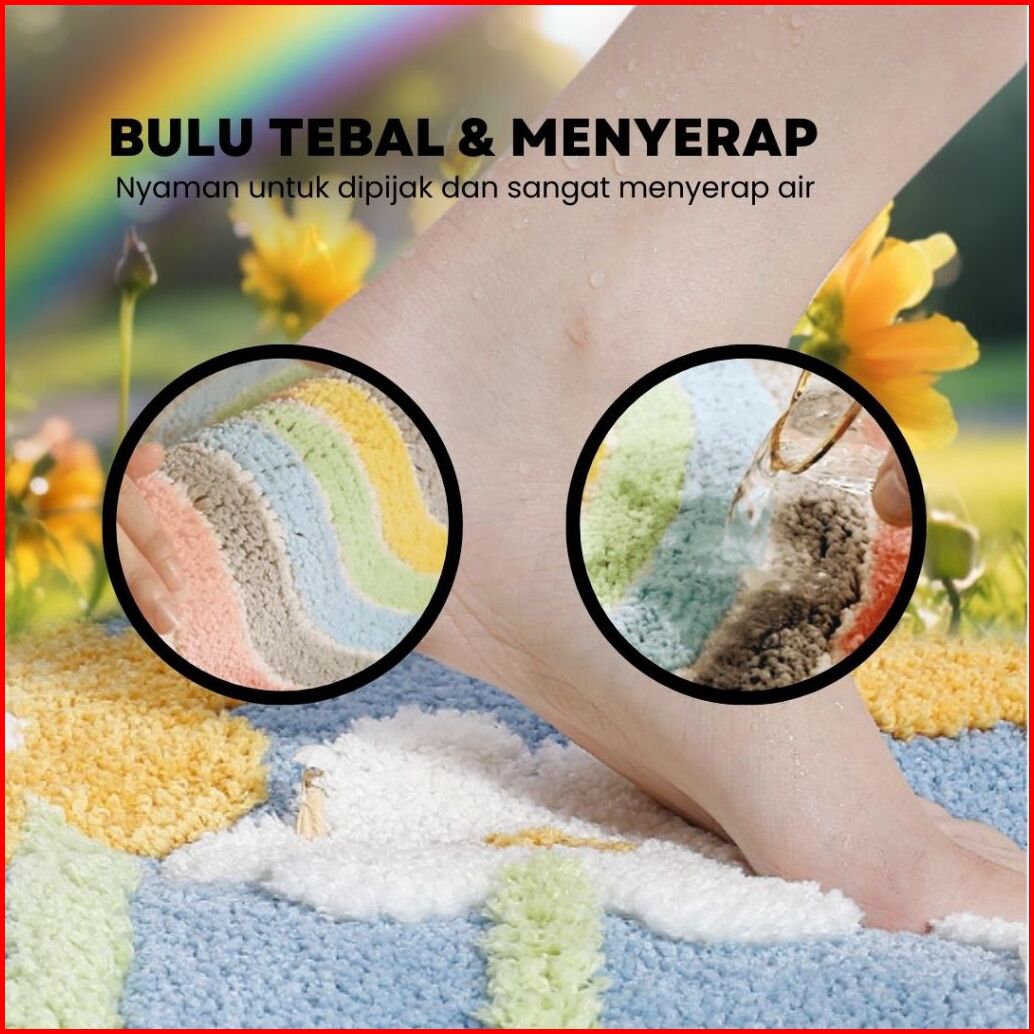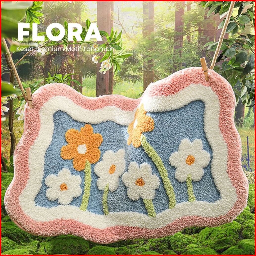 Kivi - Keset Bulu Tebal Premium Motif Flora Aesthetic 45 X 65 Cm Polyester Fiber Keset Anti Slip Keset Menyerap Air Coco