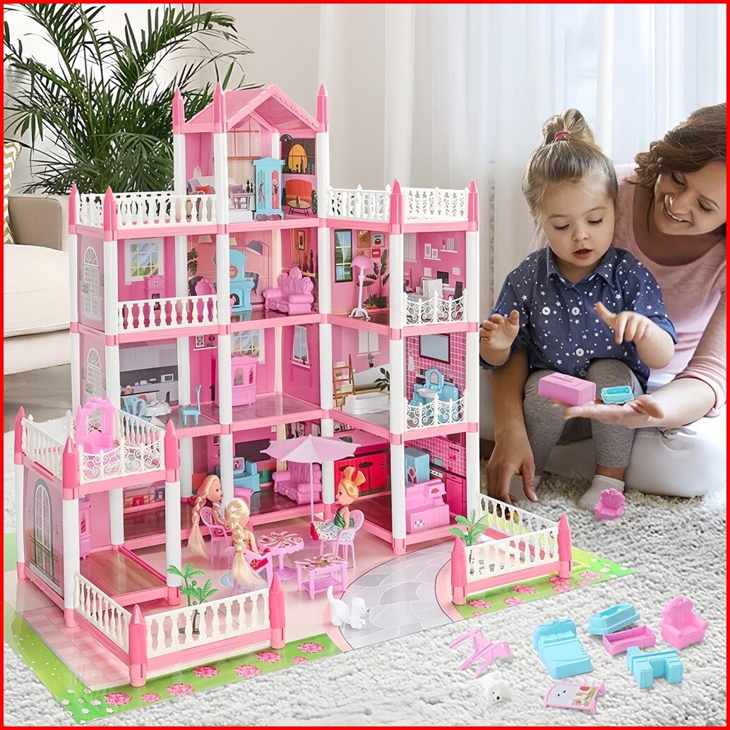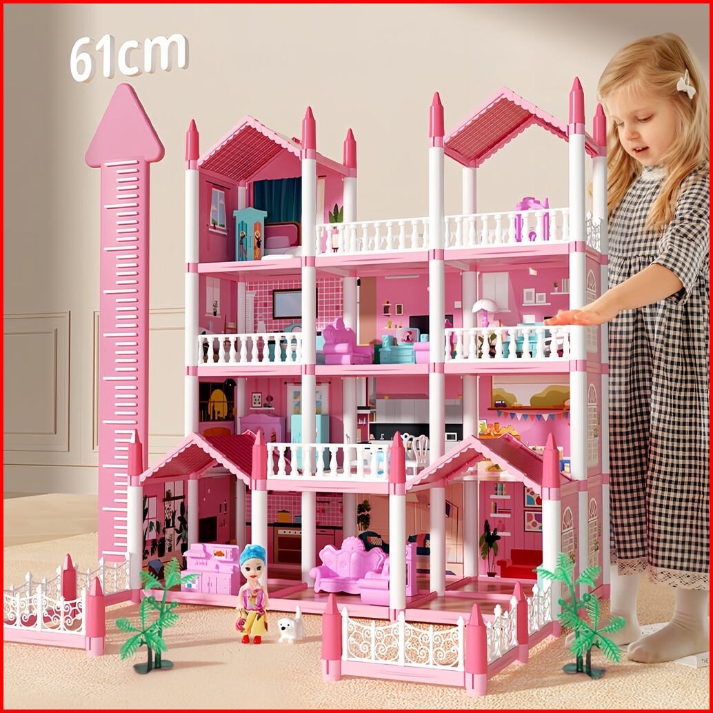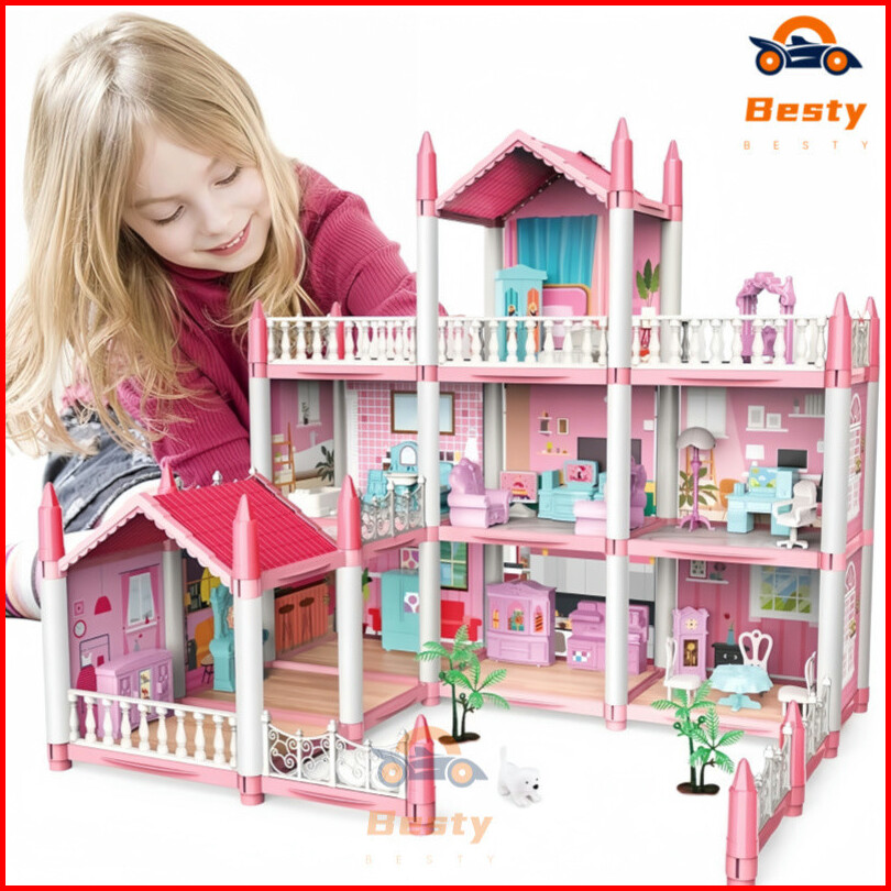 Besty Diy Bermain Rumah Vila Putri 3d Mainan Kastil Rumah Boneka Gratis Strip Lampu Dan Boneka Kain