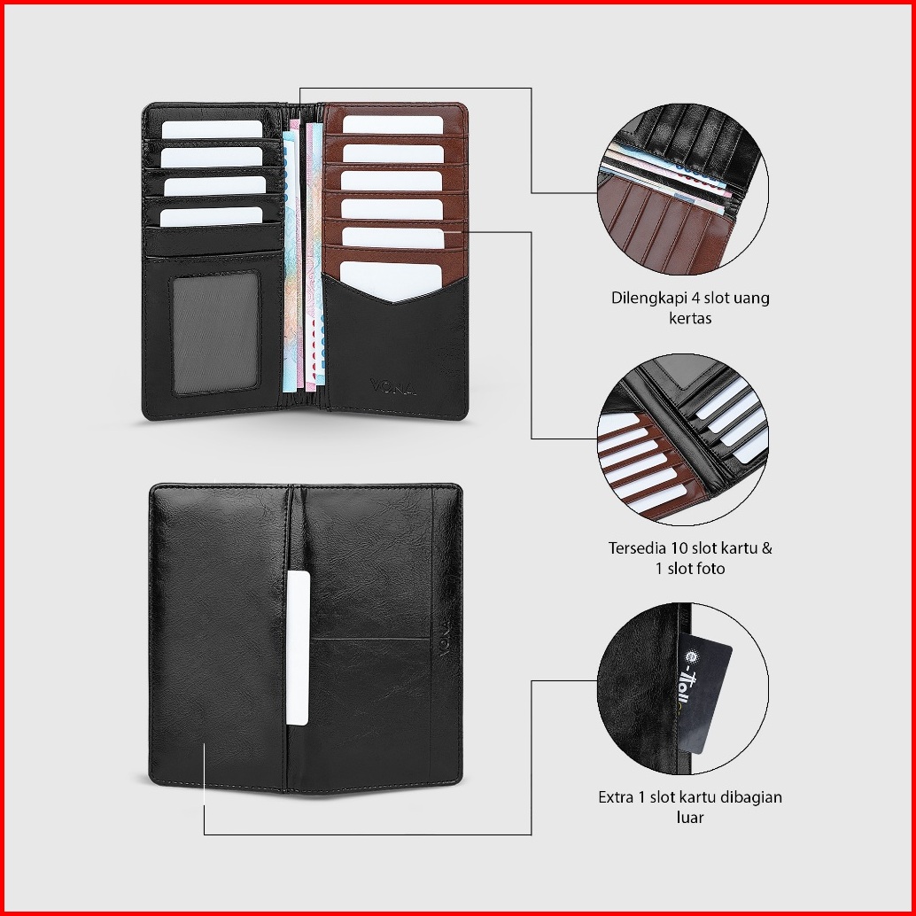 Vona Monaco Long Wallet - Dompet Panjang Lipat 2 Extra Ruang Kartu Kulit Pu