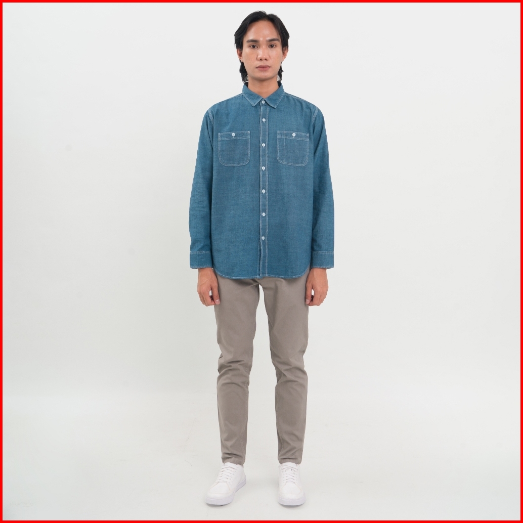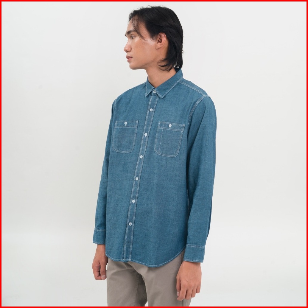 M231 Kemeja Pria Denim Panjang Dark Blue 0684a
