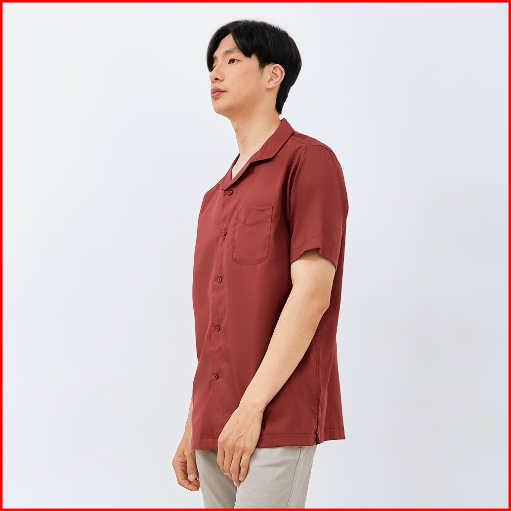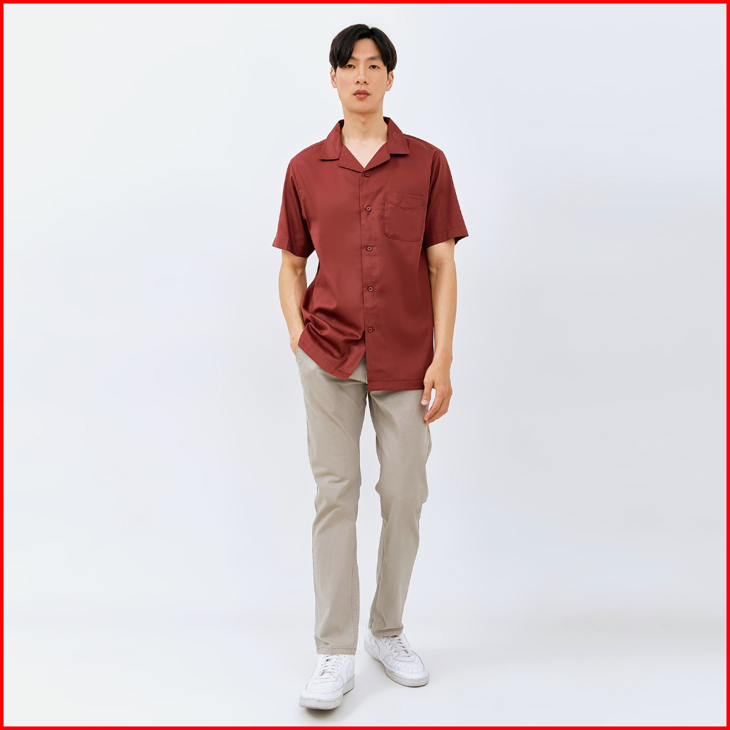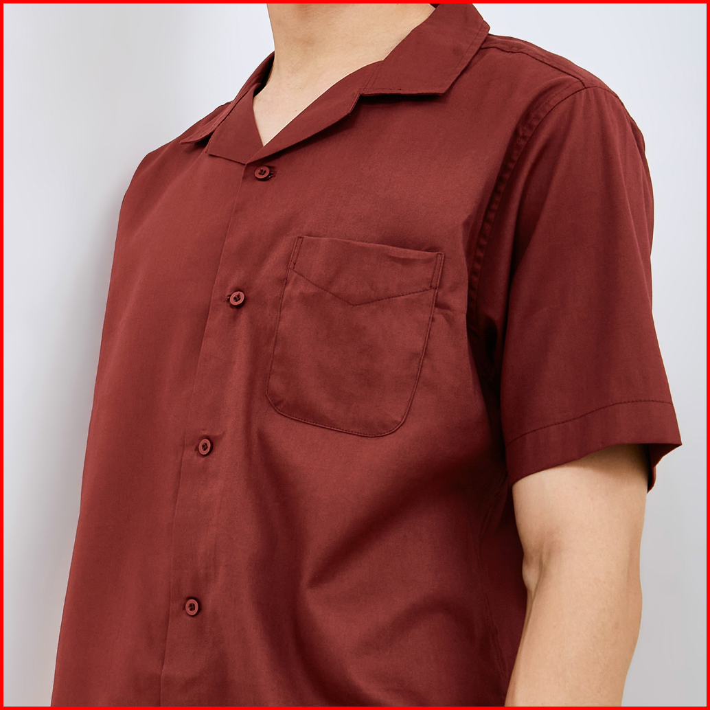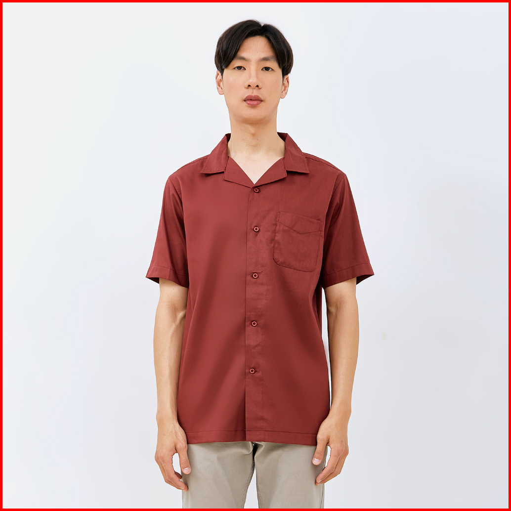 M231 Kemeja Pria Basic Polos Hawaii Pendek Maroon 0159h