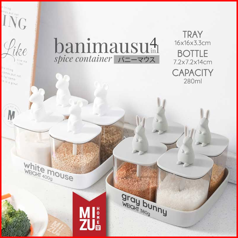 Mizu Banimausu 4in1 Spice Container Seasoning Jar Spice Bottle Botol Bumbu Dapur Tempat Rempah Rempah