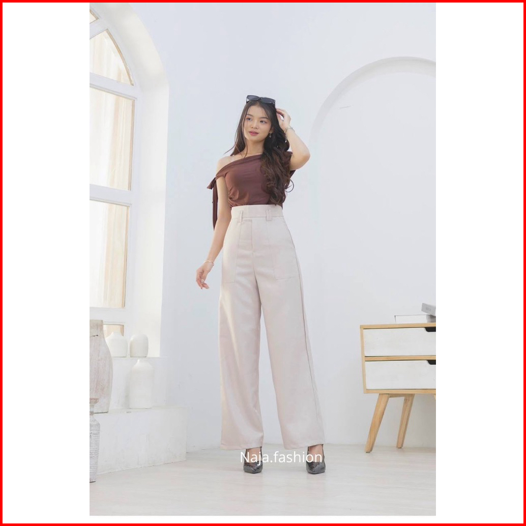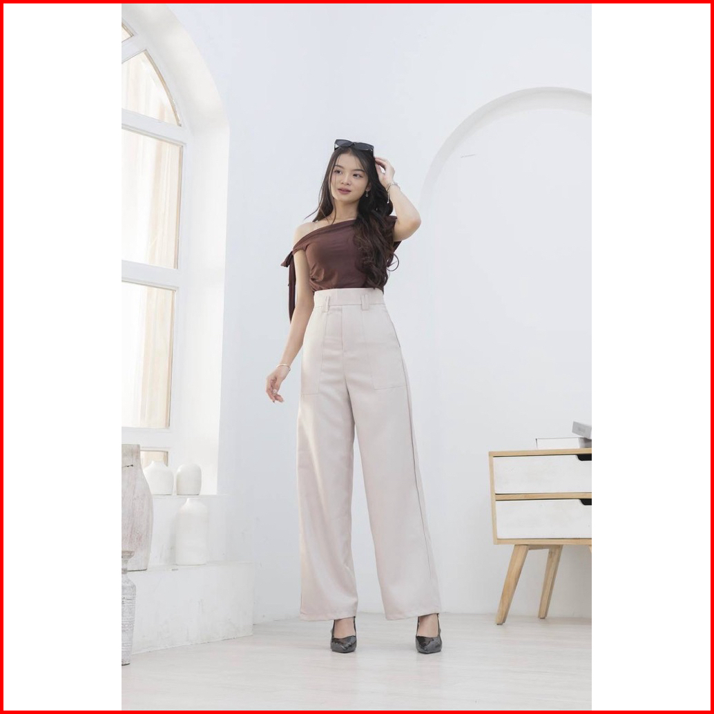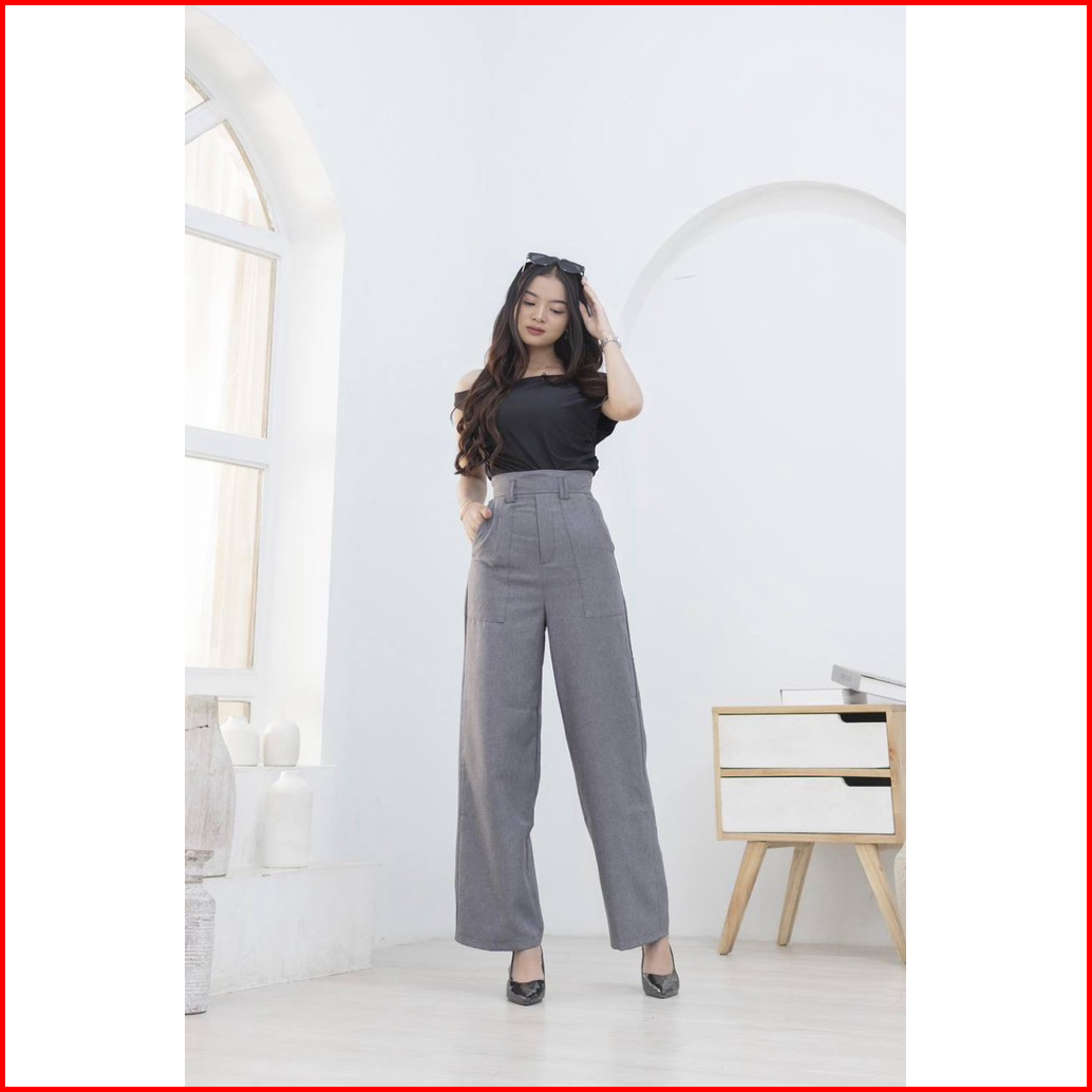 Moonza Storee Diora Highwaist Pants Kulot Straight Cut Pants Wanita
