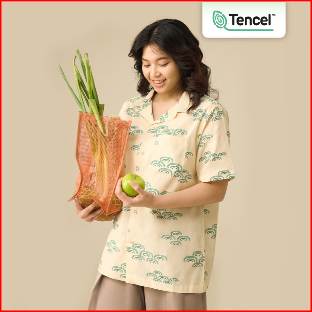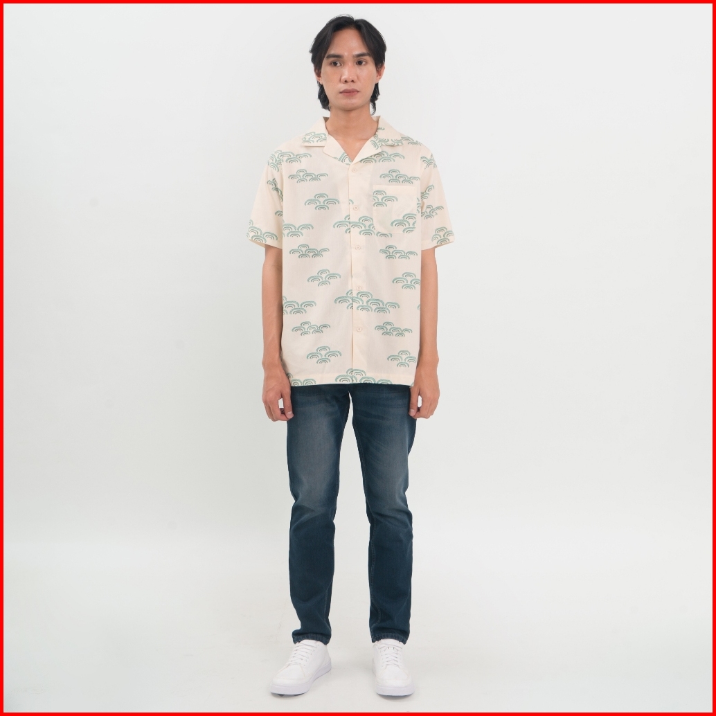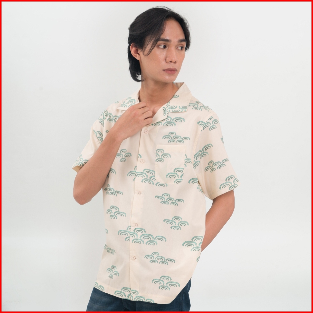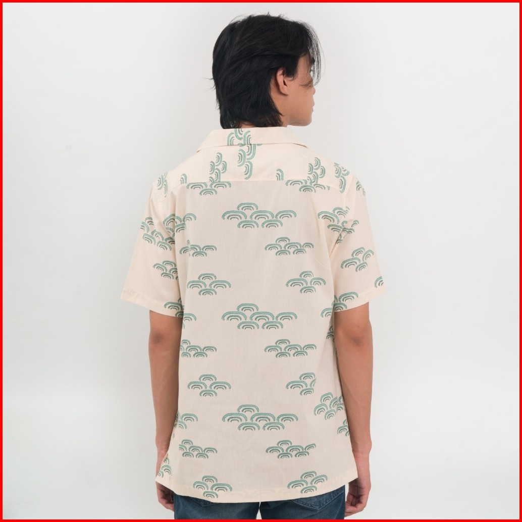 M231 Kemeja Pria Tencel Printing Hawaii Pendek Cream 0899b