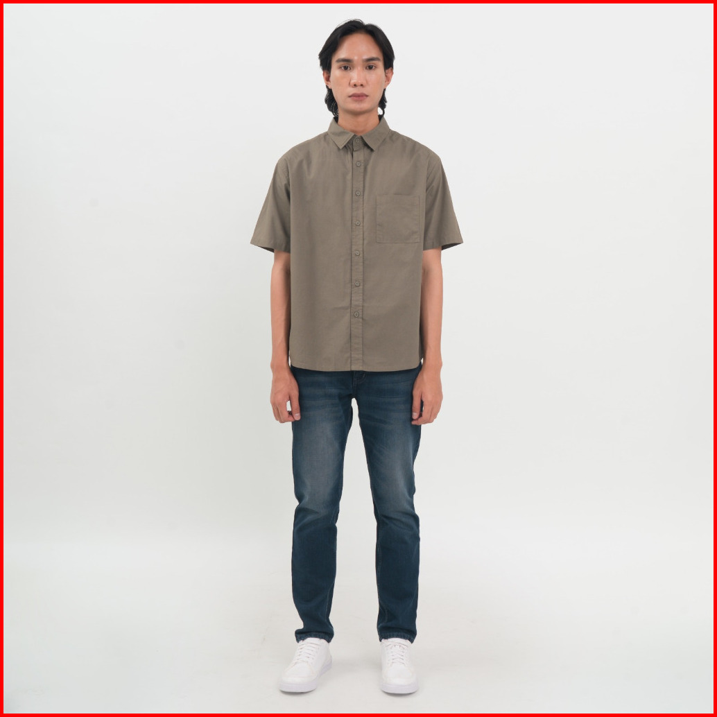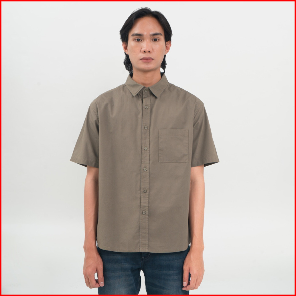 M231 Kemeja Pria Basic Polos Pendek Taupe Grey 0983b