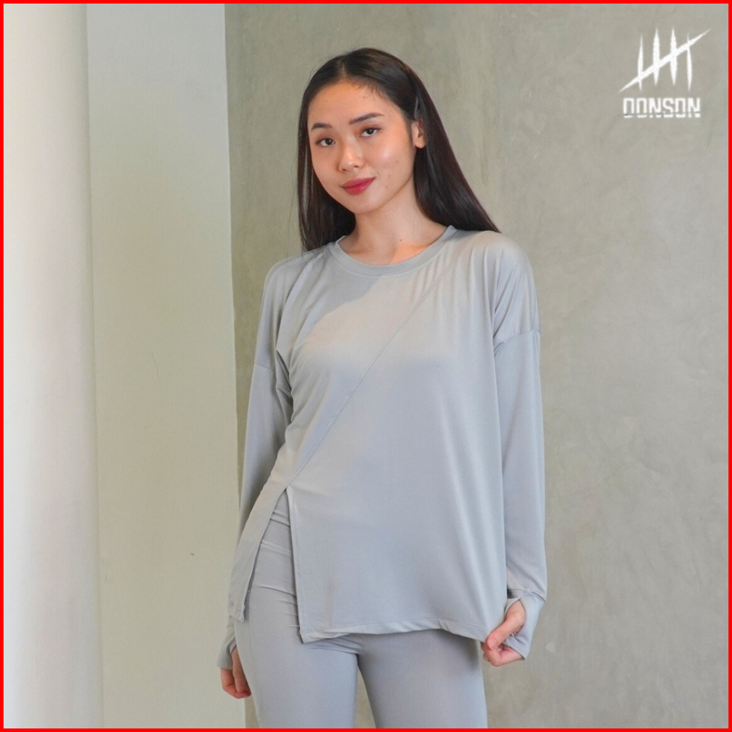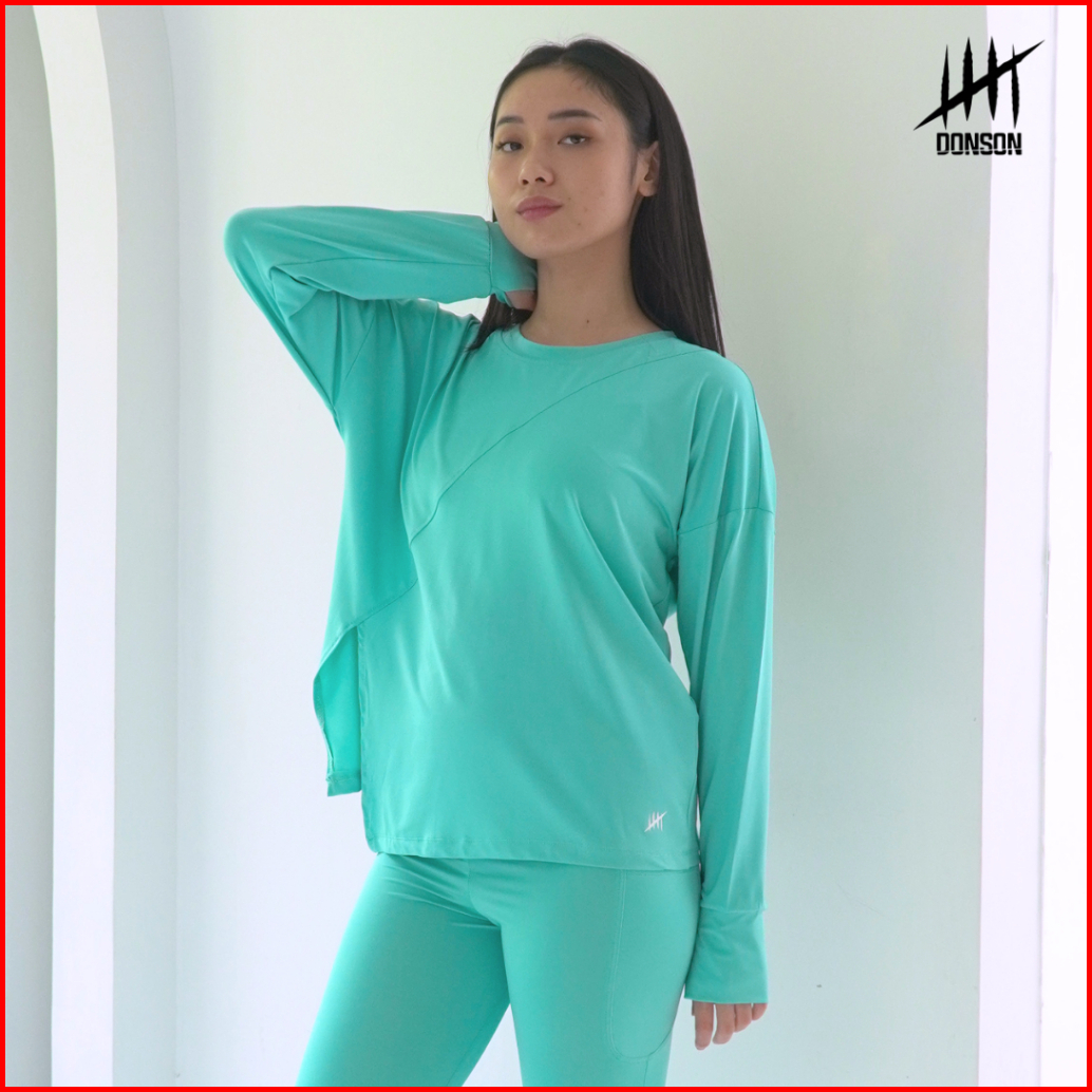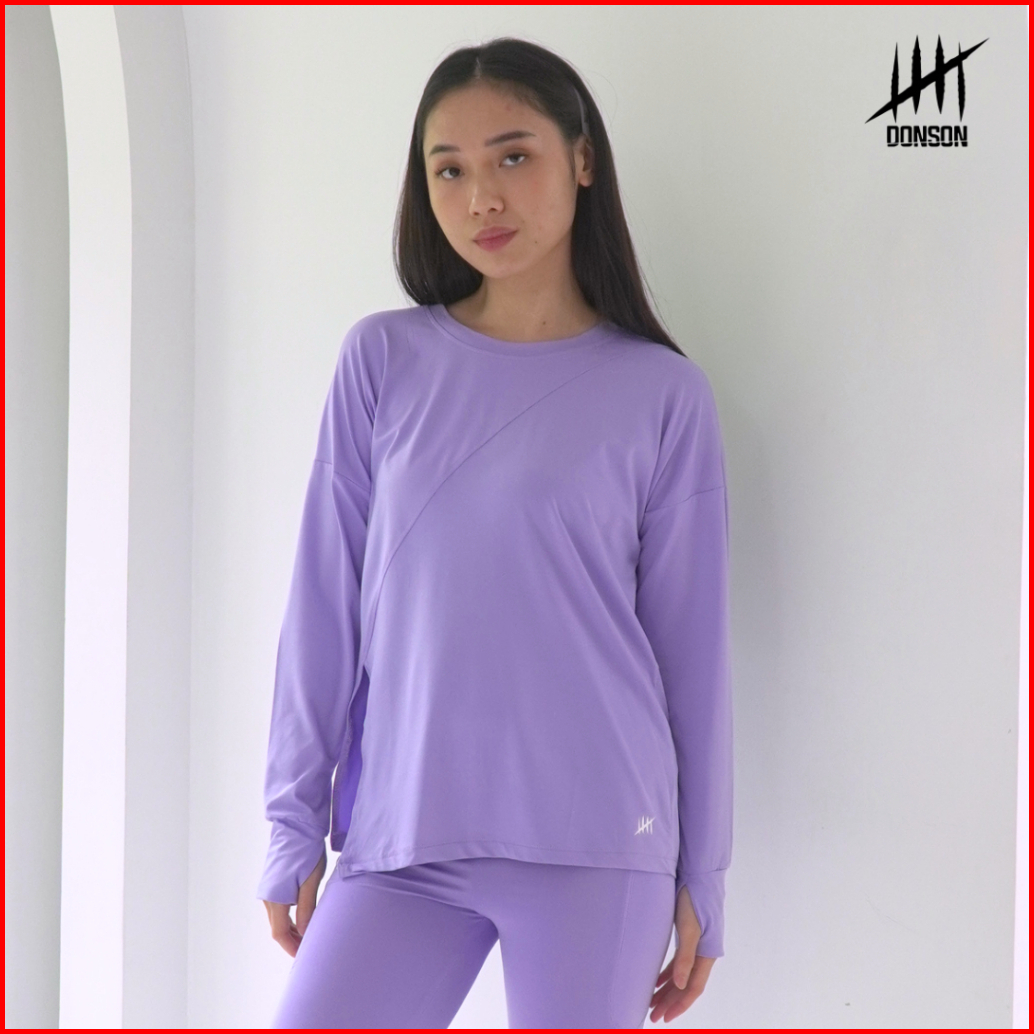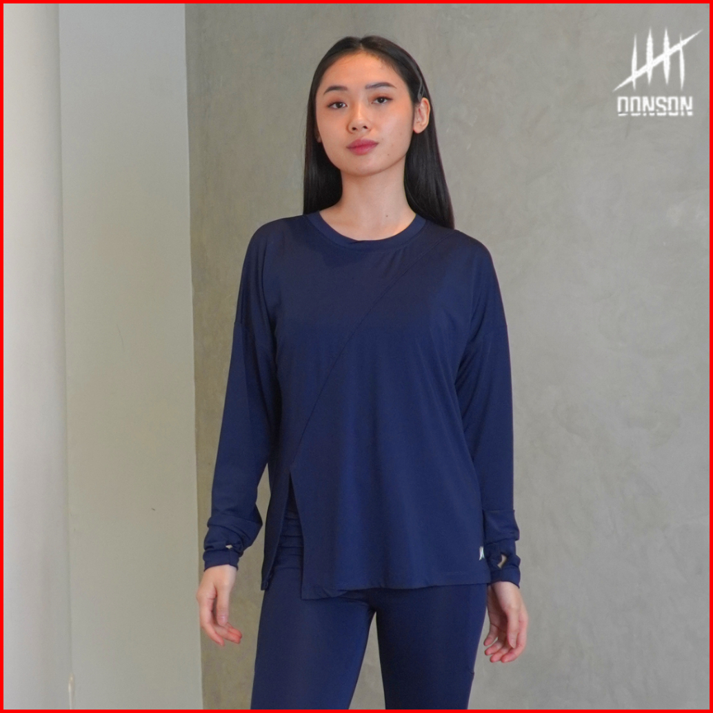Donson Atasan Olahraga Oversize Wanita Lengan Panjang Kasual Hijab Kaos Style Depan