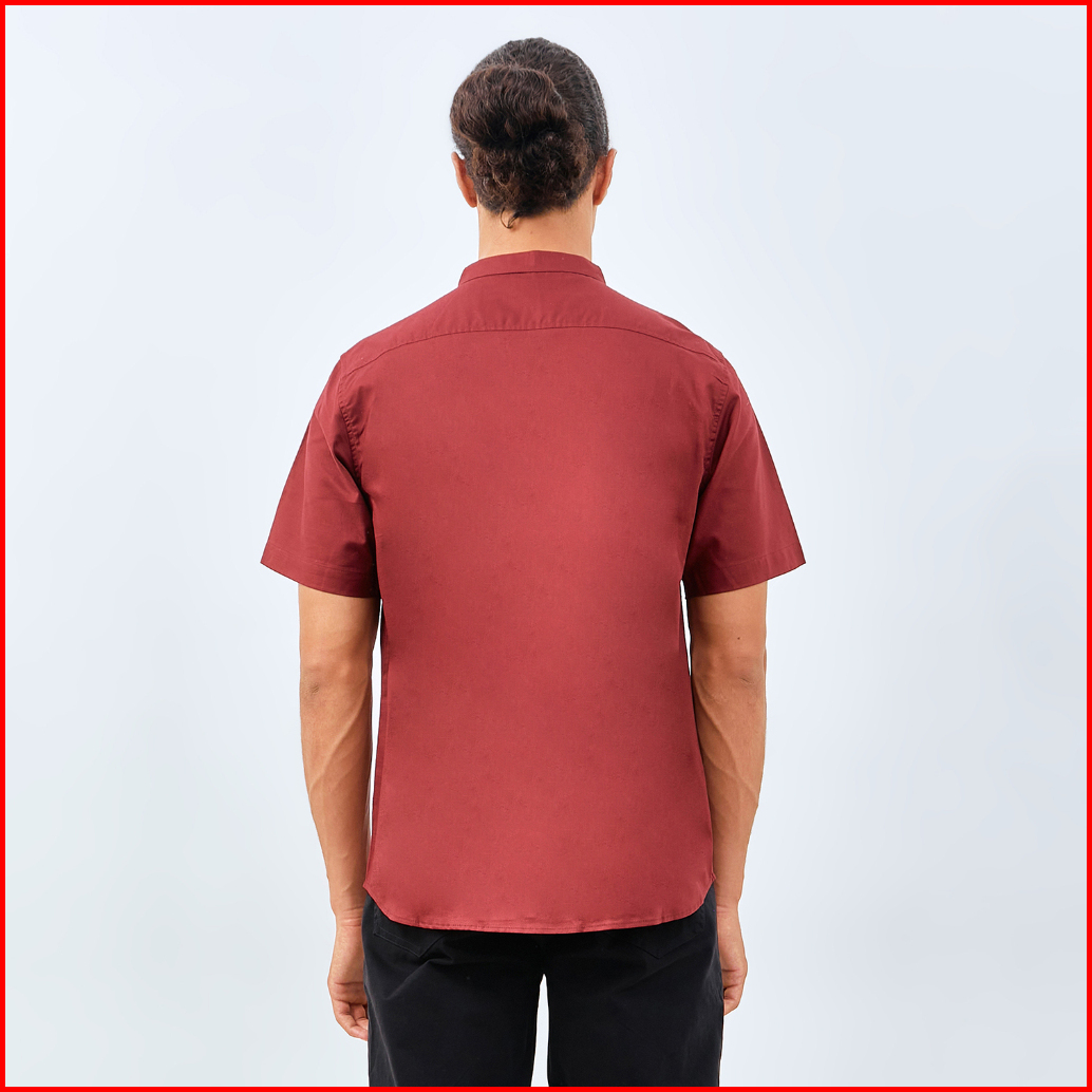 M231 Kemeja Pria Koko Shanghai Polos Pendek Maroon 0184i