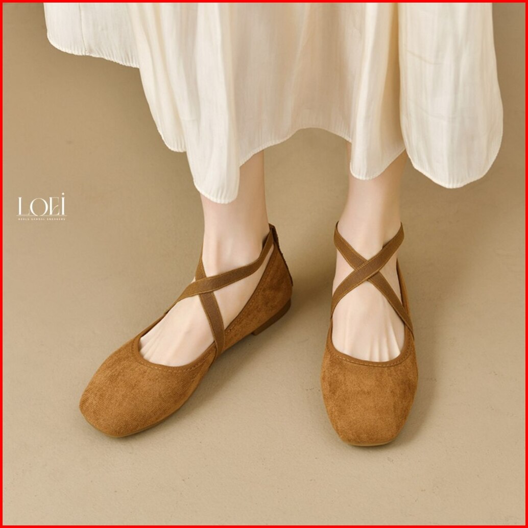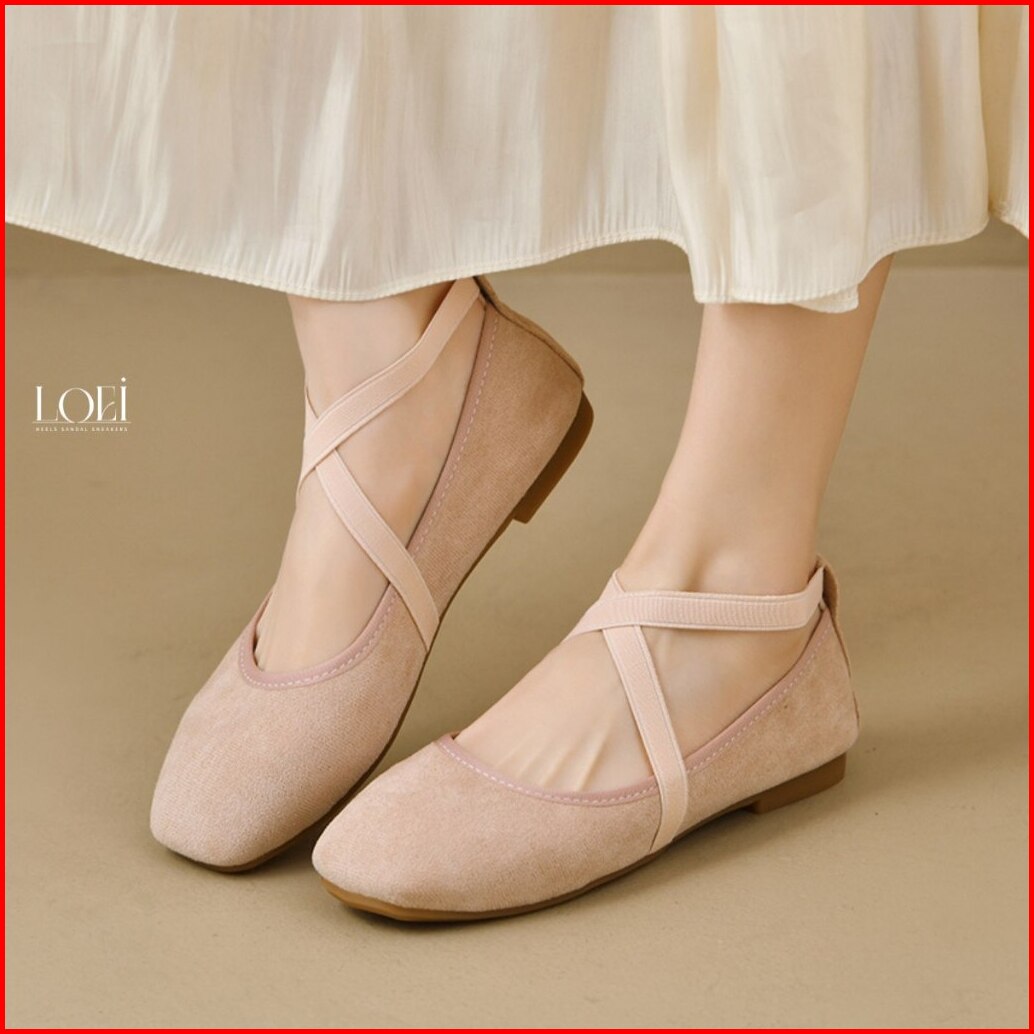 Loei Davina Sepatu Flat Wanita Stylish Tali Silang Elastis Flatshoes Balet Fashion 4818h