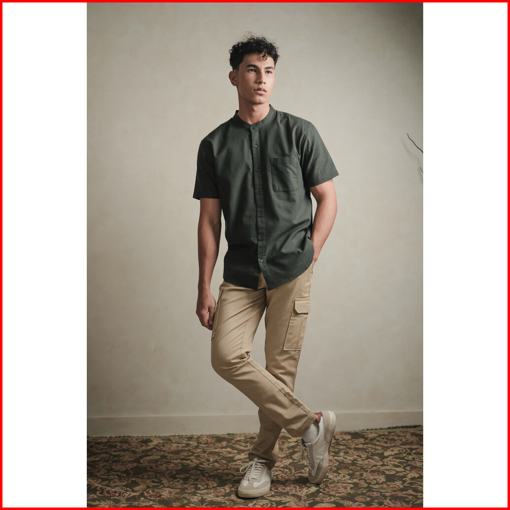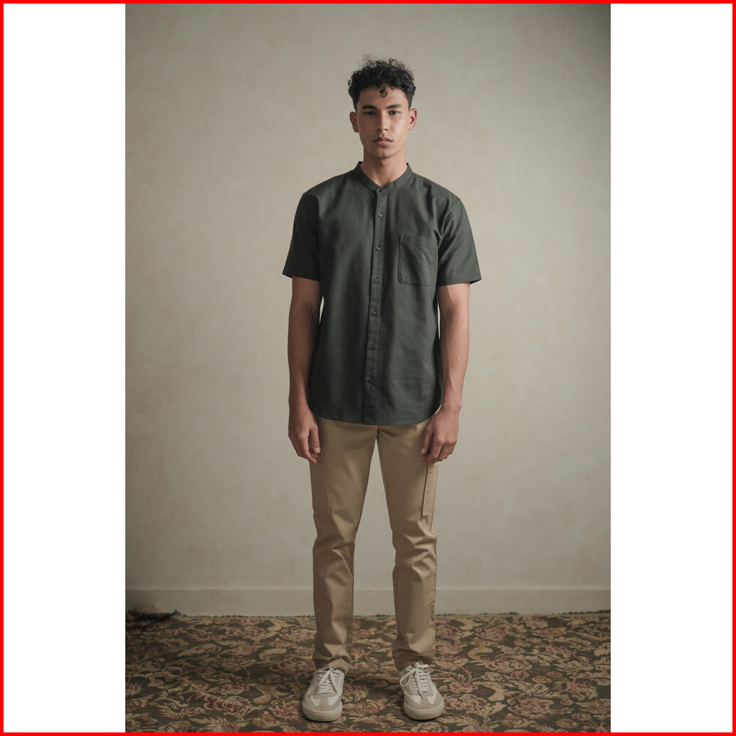 Larusso Khair Collection - Kemeja Koko Rami Basic Polos Pria Lengan Pendek - Dark Green