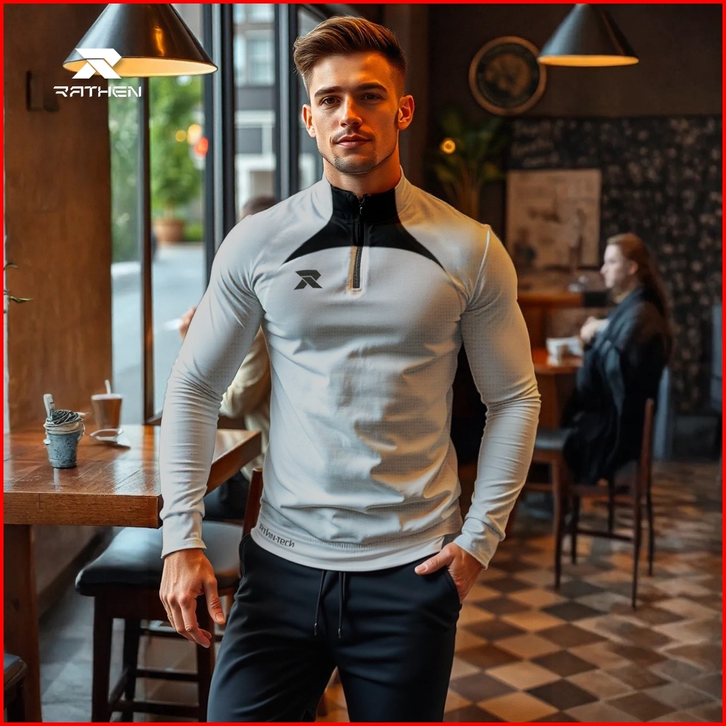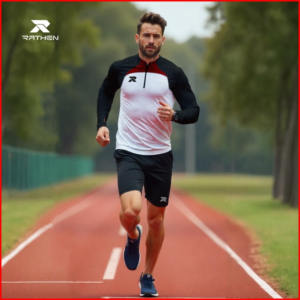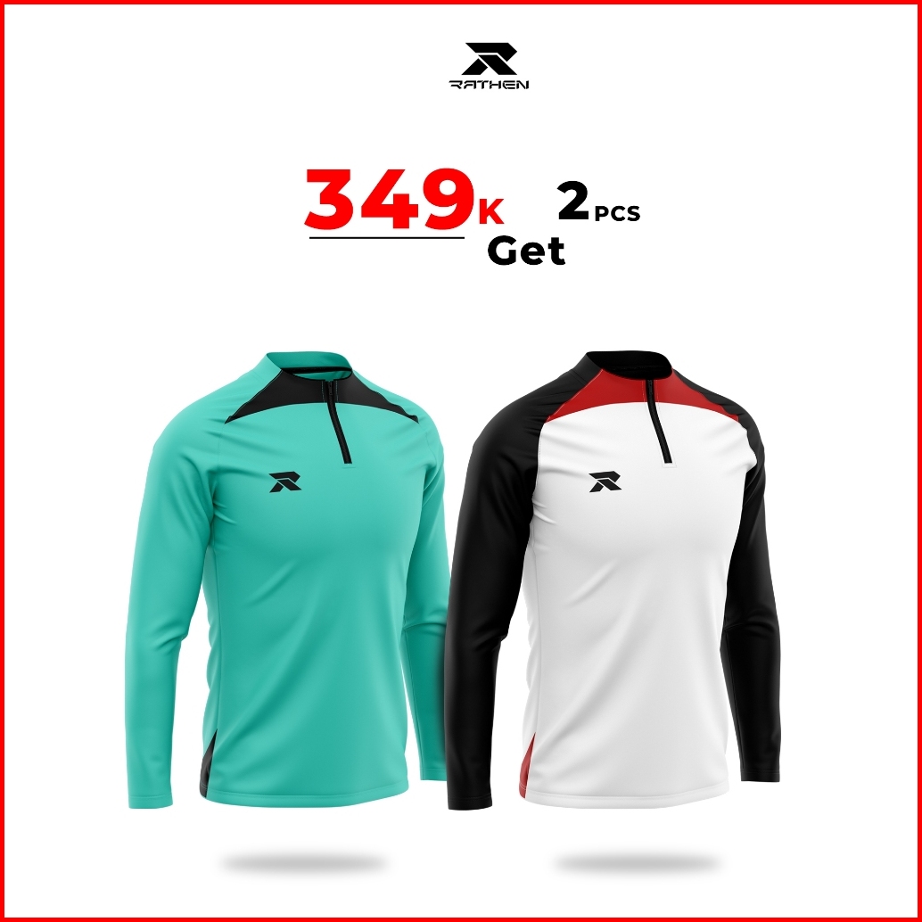 Rathen - Midlayer White Baju Olahraga Running Football Gym Pria Strech Dan Breathable