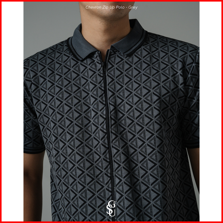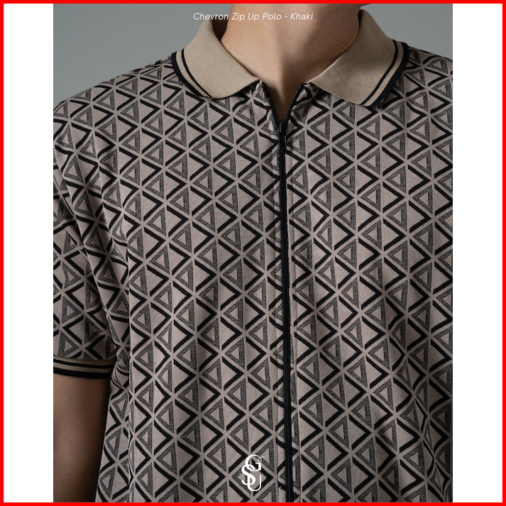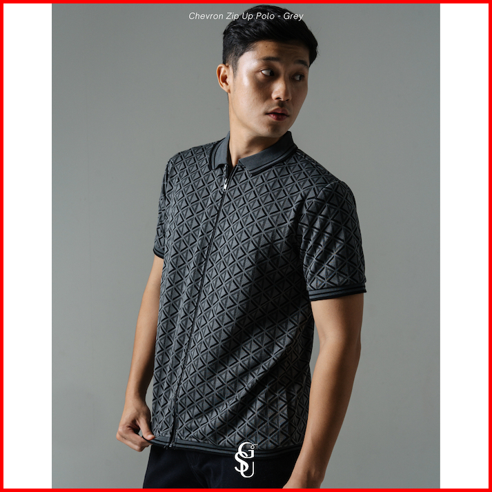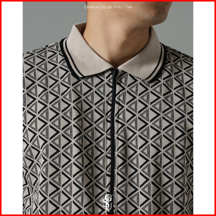 Giseu - Chevron Zip Up Knit Polo