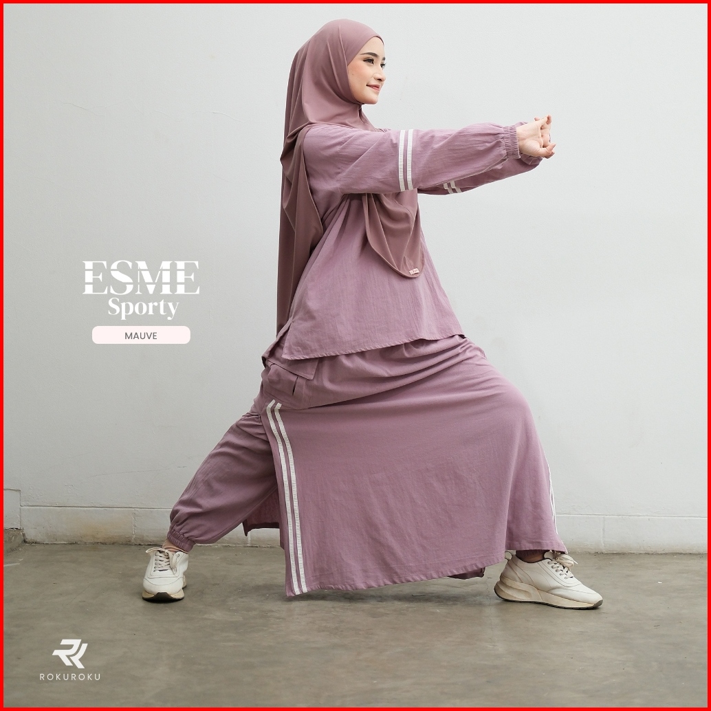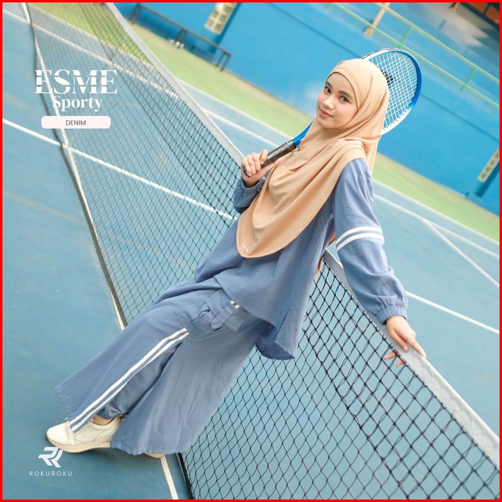 Rokuroku.id Esme Sporty - Setelan Baju Olahraga Wanita Muslim One Set Jumbo Syari Premium Terbaru