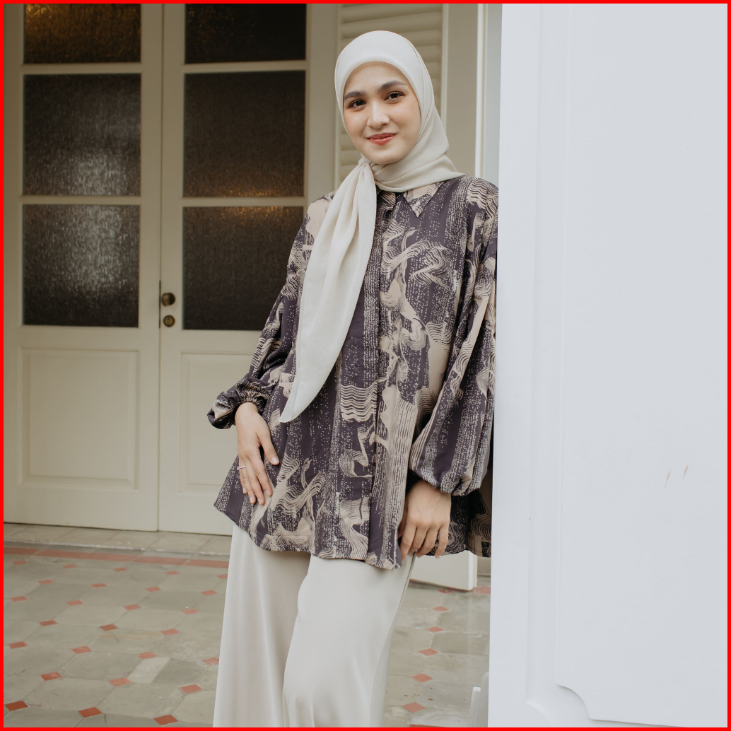 Lozy Hijab - Syifa Dress Blouse Lozy X Cut Syifa Abaya Gamis Atasan Blouse Motif Abstrak Bahan Cooltech Anti Uv