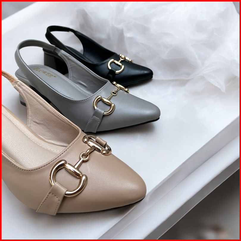Basic Elegant Heels Tahu Wanita Jo04 5cm - Highheels Tali Karet - Sepatu Kerja Wanita