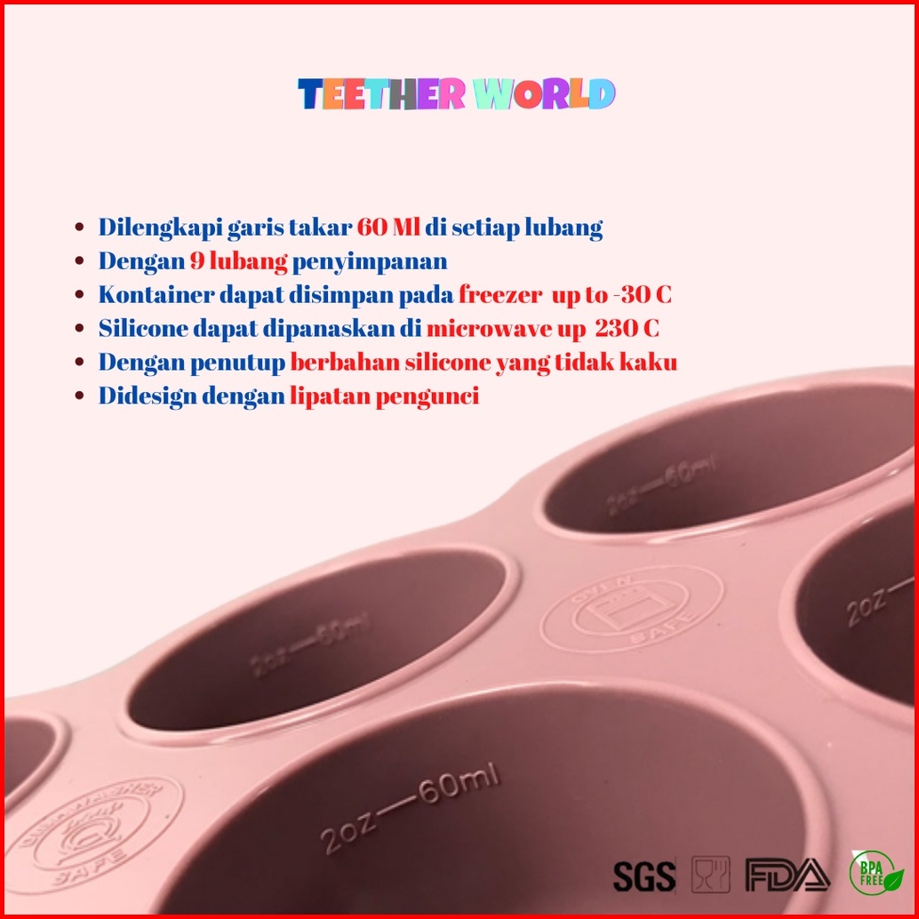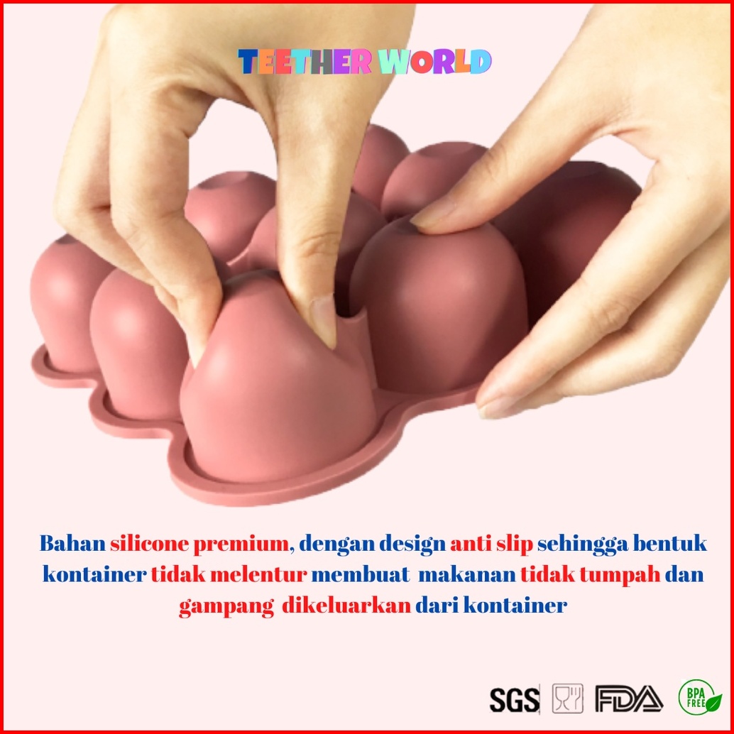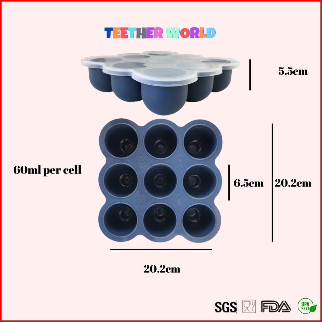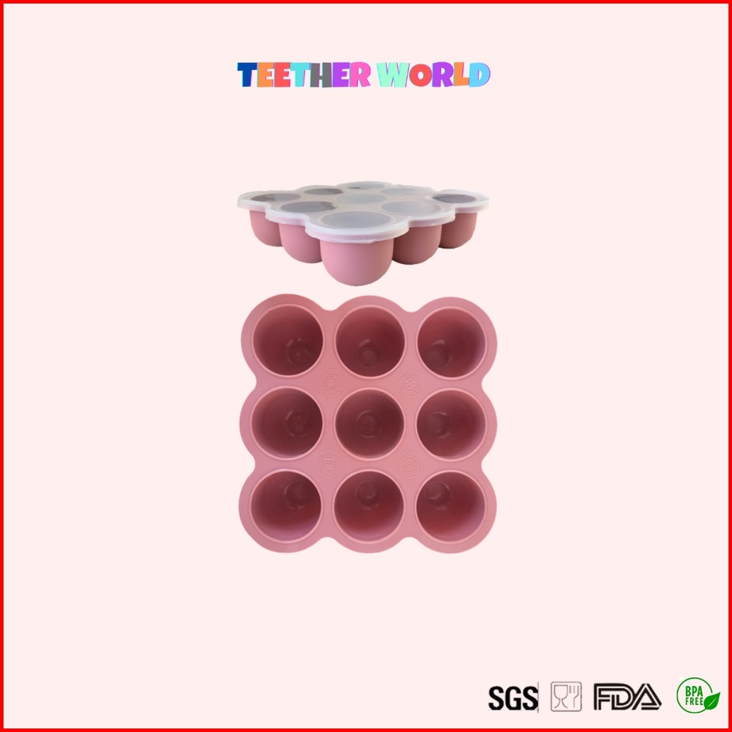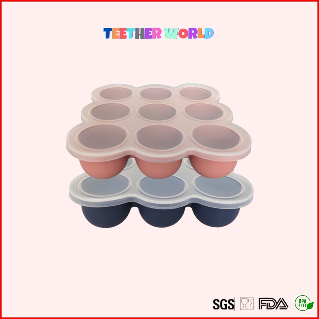 Silicone Food Container Cube Tray 9 Holes Tempat Makan Mpasi Bayi Food Storage Freezer Tempat Kaldu Mpasi Cetakan Kaldu