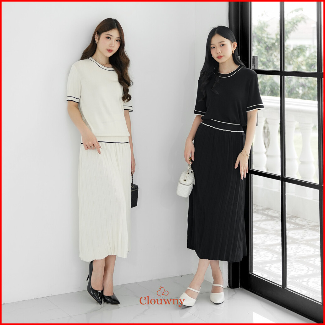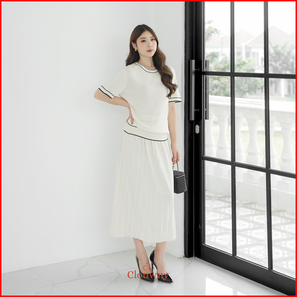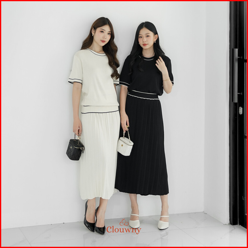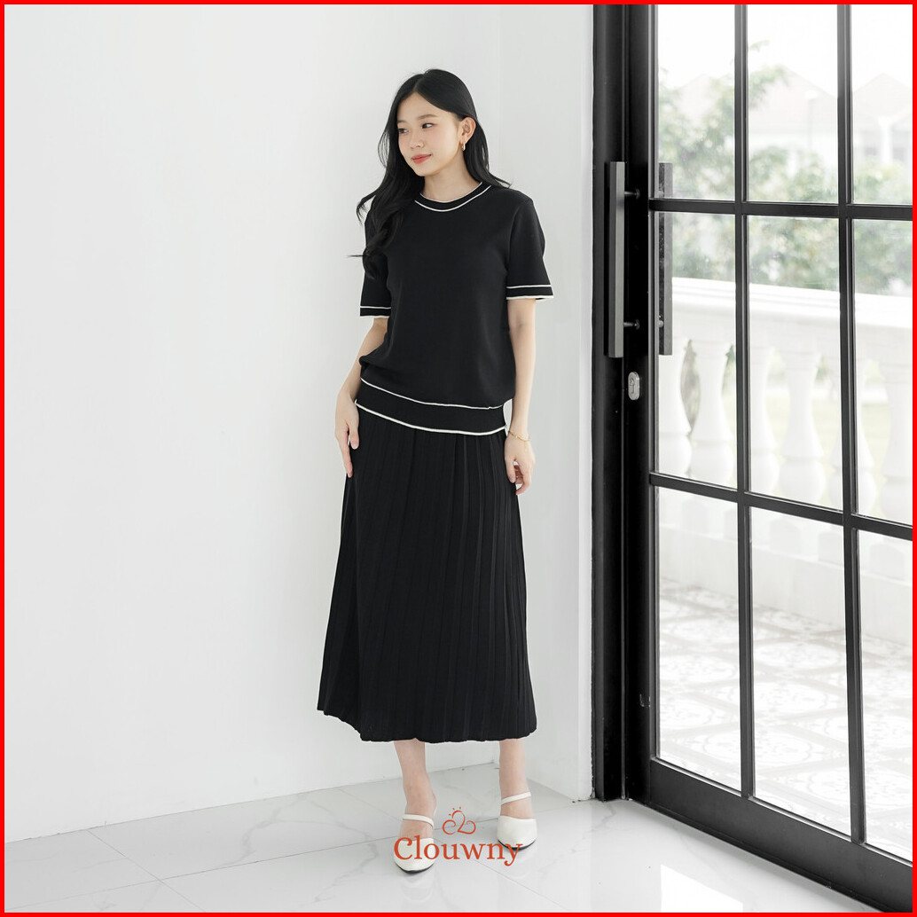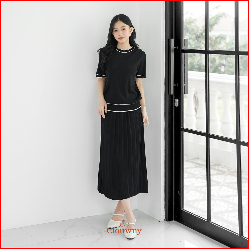 Clouwny Flint Knit Set Setelan Bawahan Rok Wanita Premium Knit Korean Look Fit To Xxl