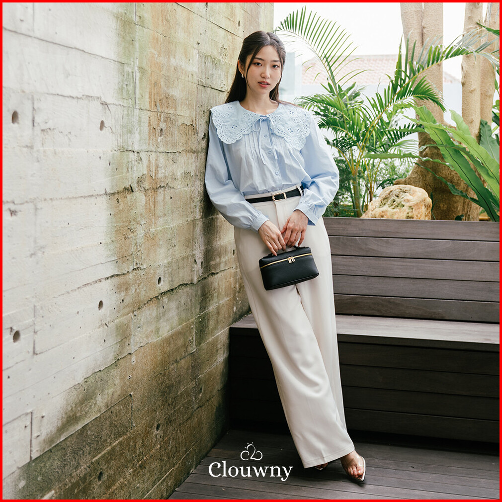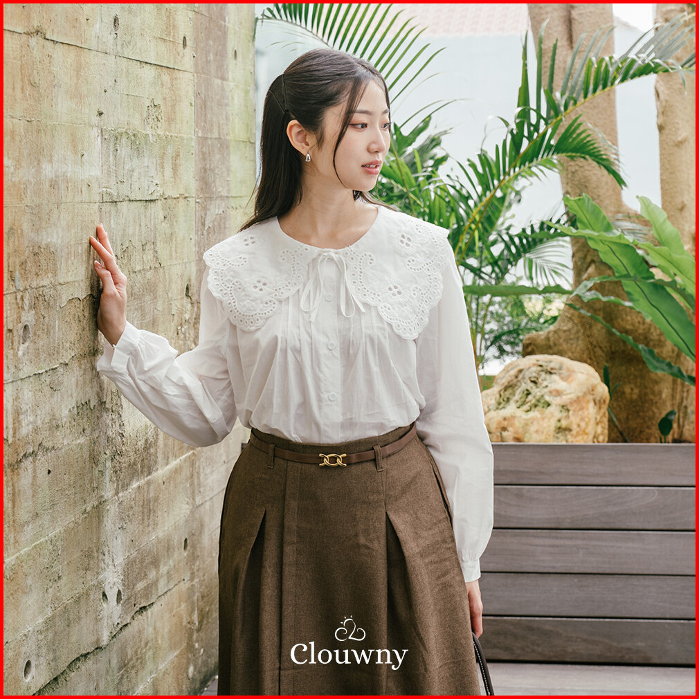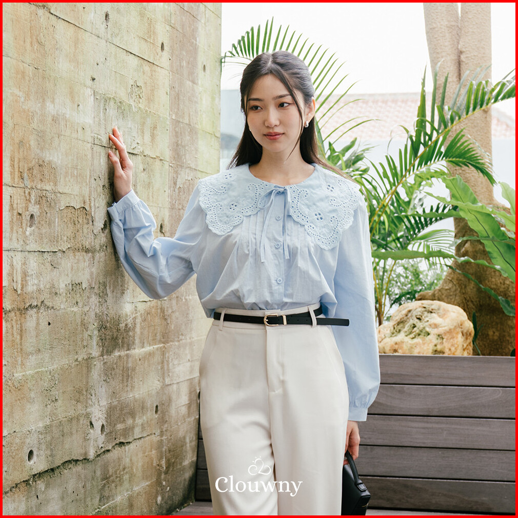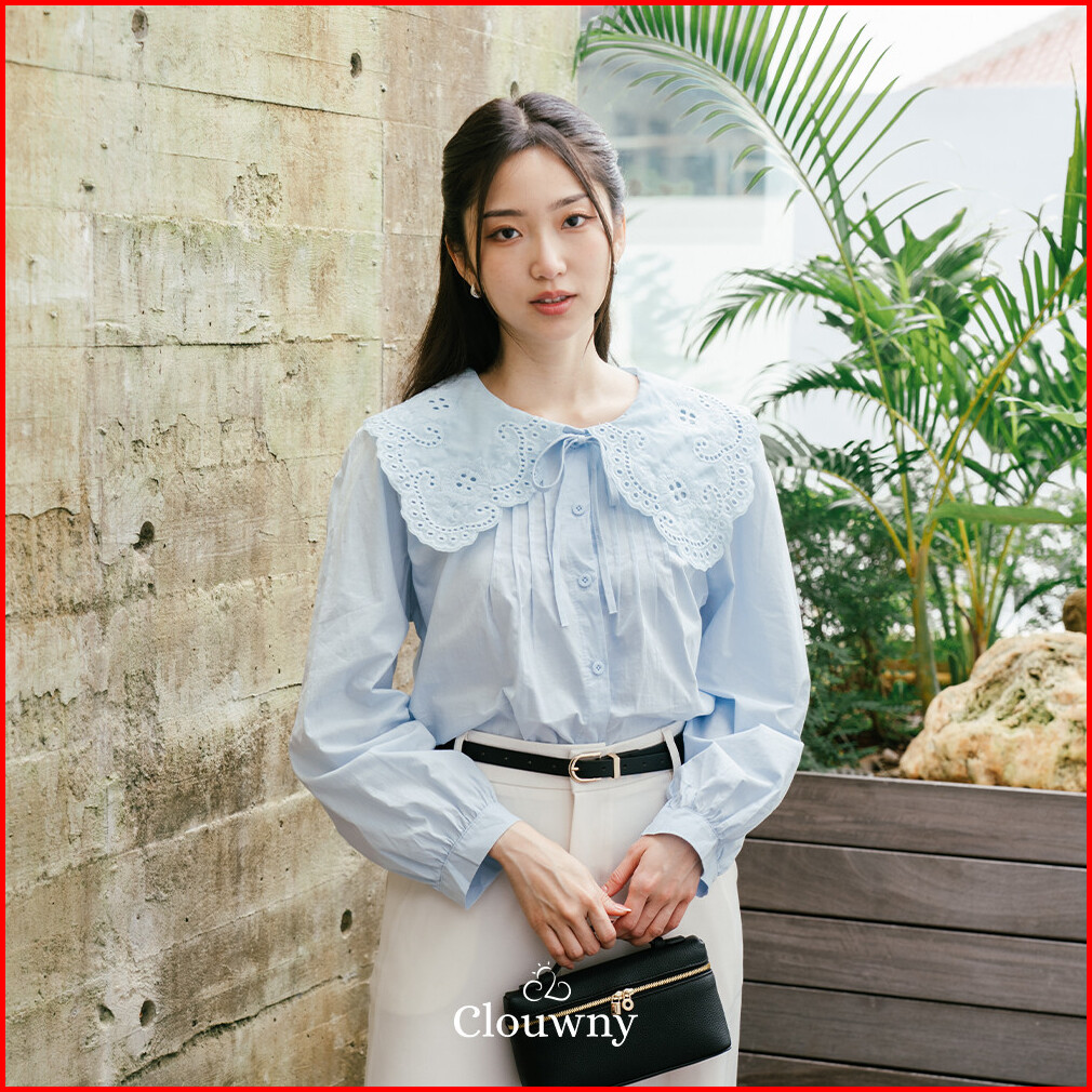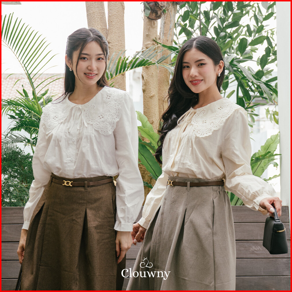 Clouwny Patsy Lace Button Blouse Atasan Wanita Lengan Panjang Premium Cotton Korean Look