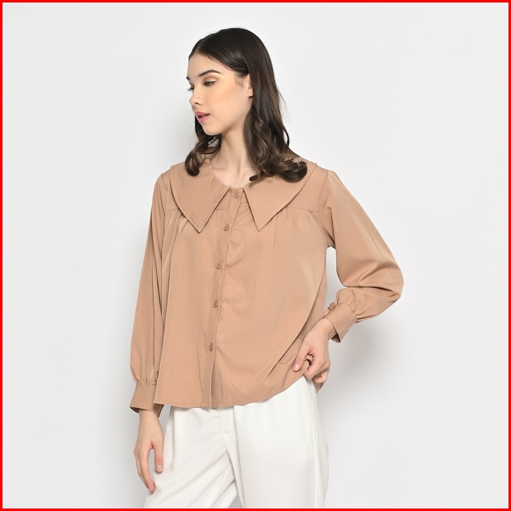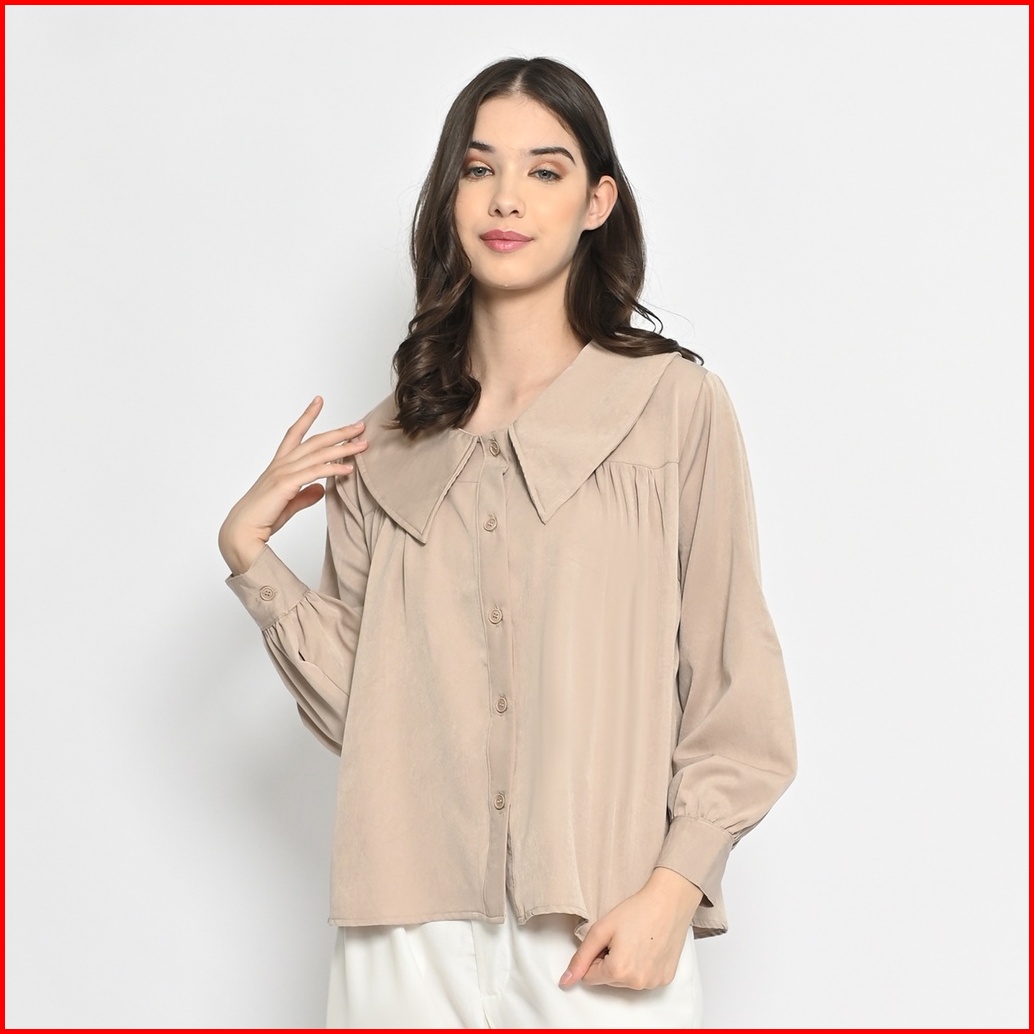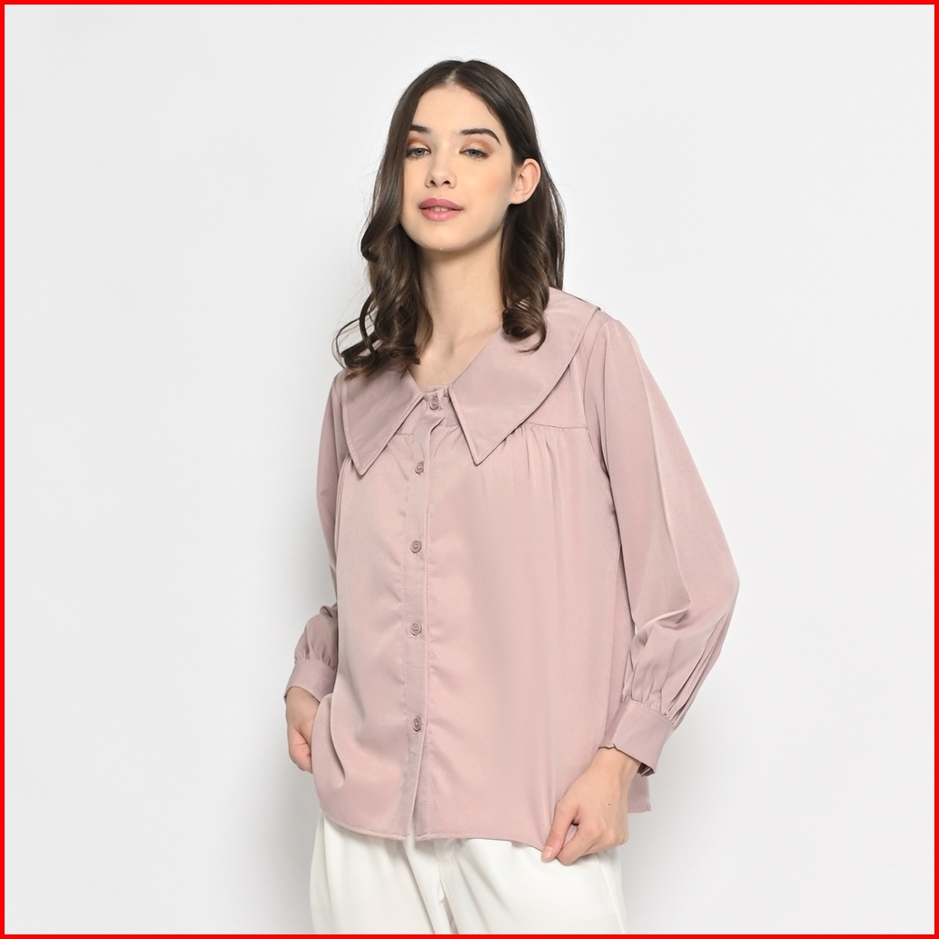 Queentin Kemeja Casual Wanita 0361 Katun Donna Polos Lengan Panjang Korean Style