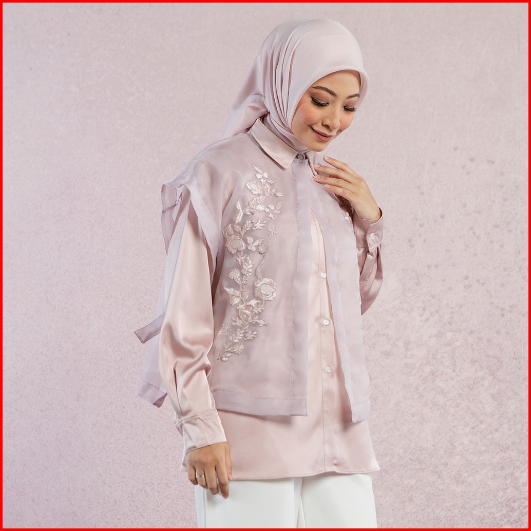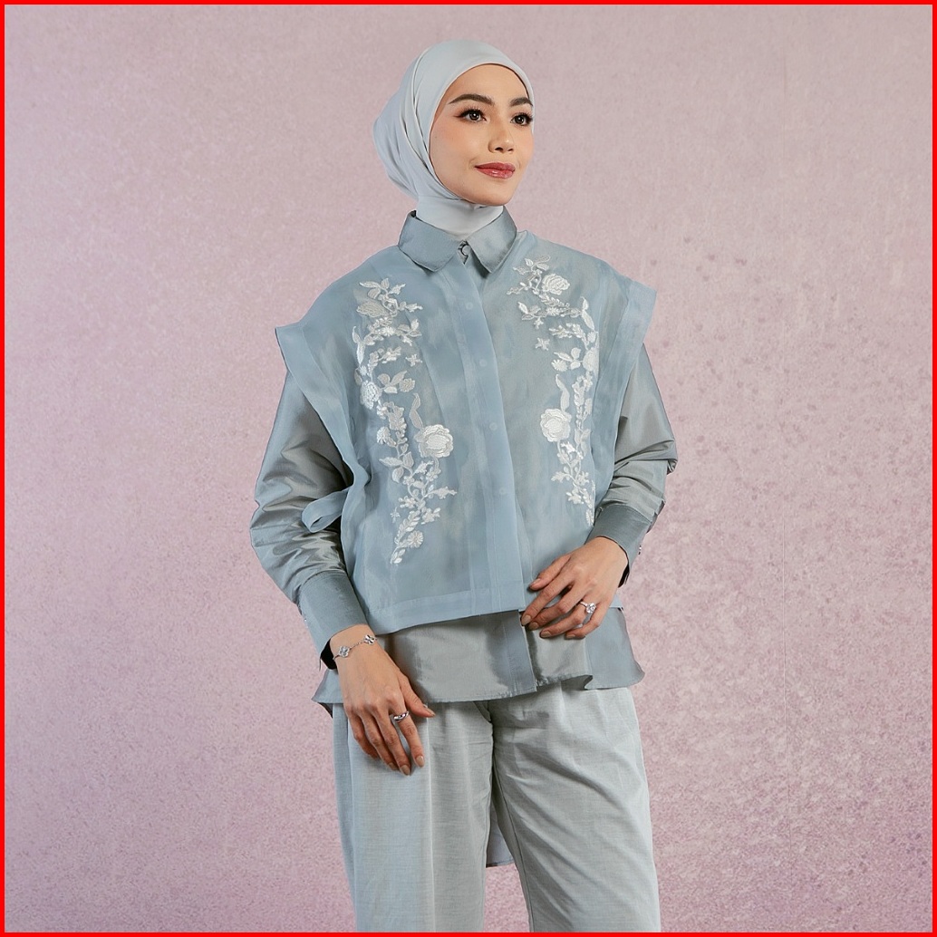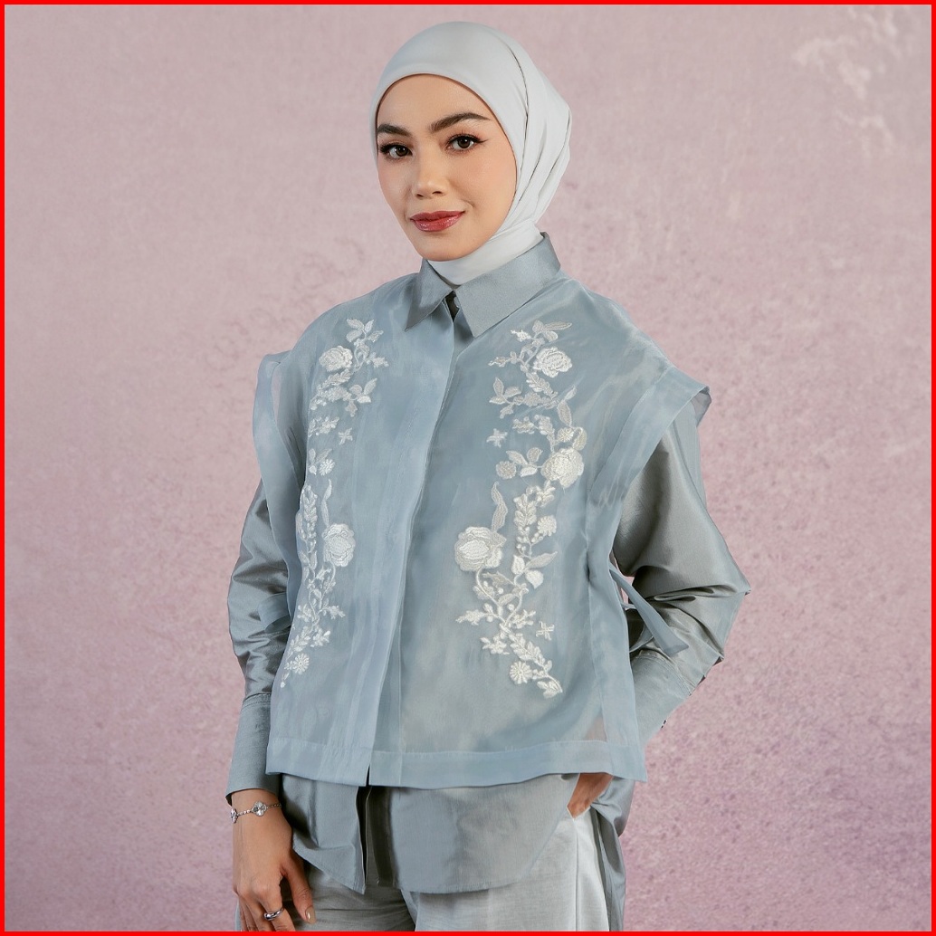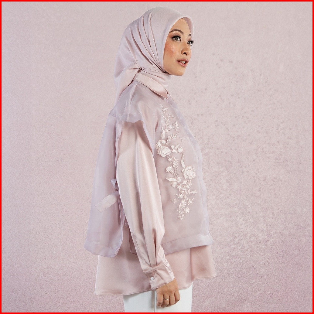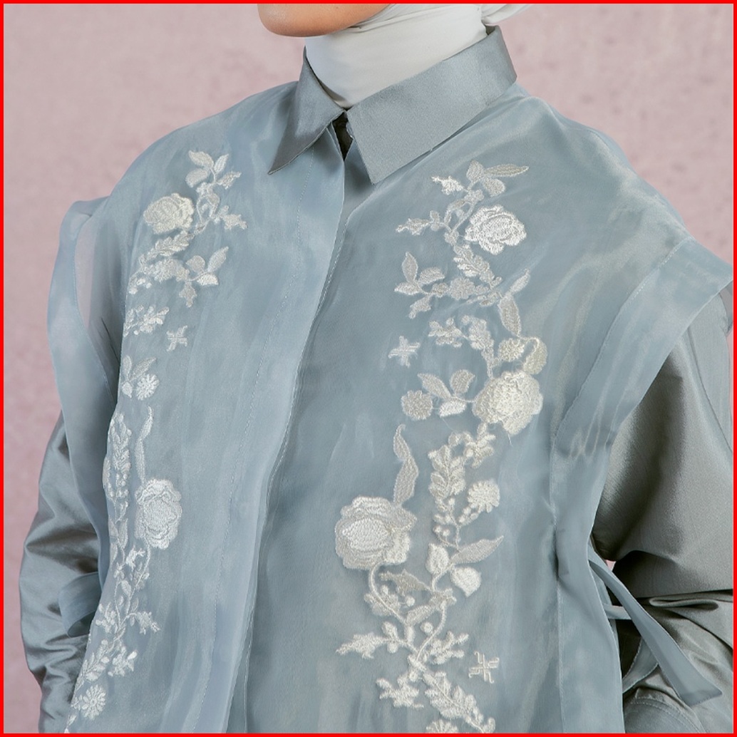 Hijabchic X Tiqasya Jane Outerwear - Outer Lebaran Sarimbit Organza Premium Bordir Bunga Elegan