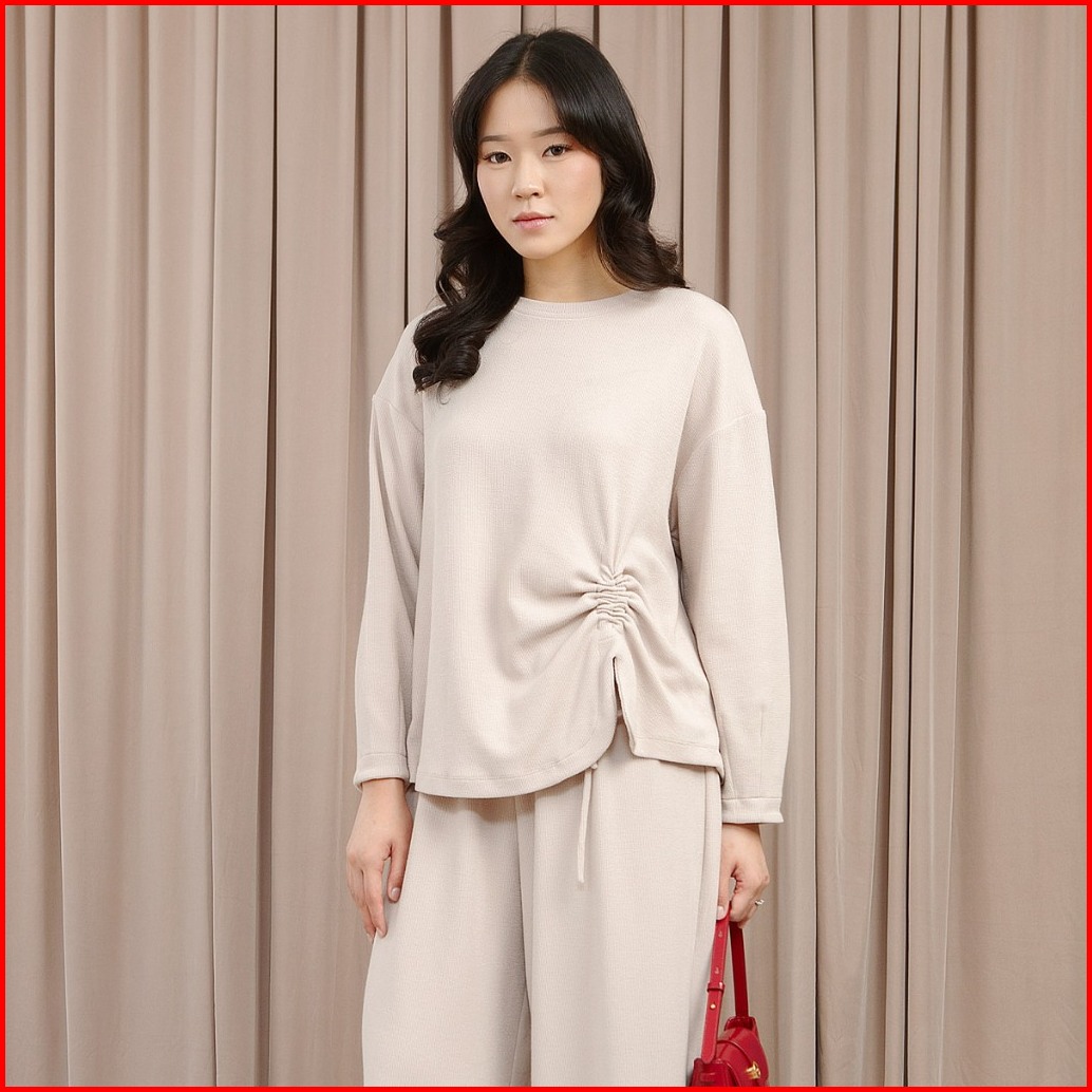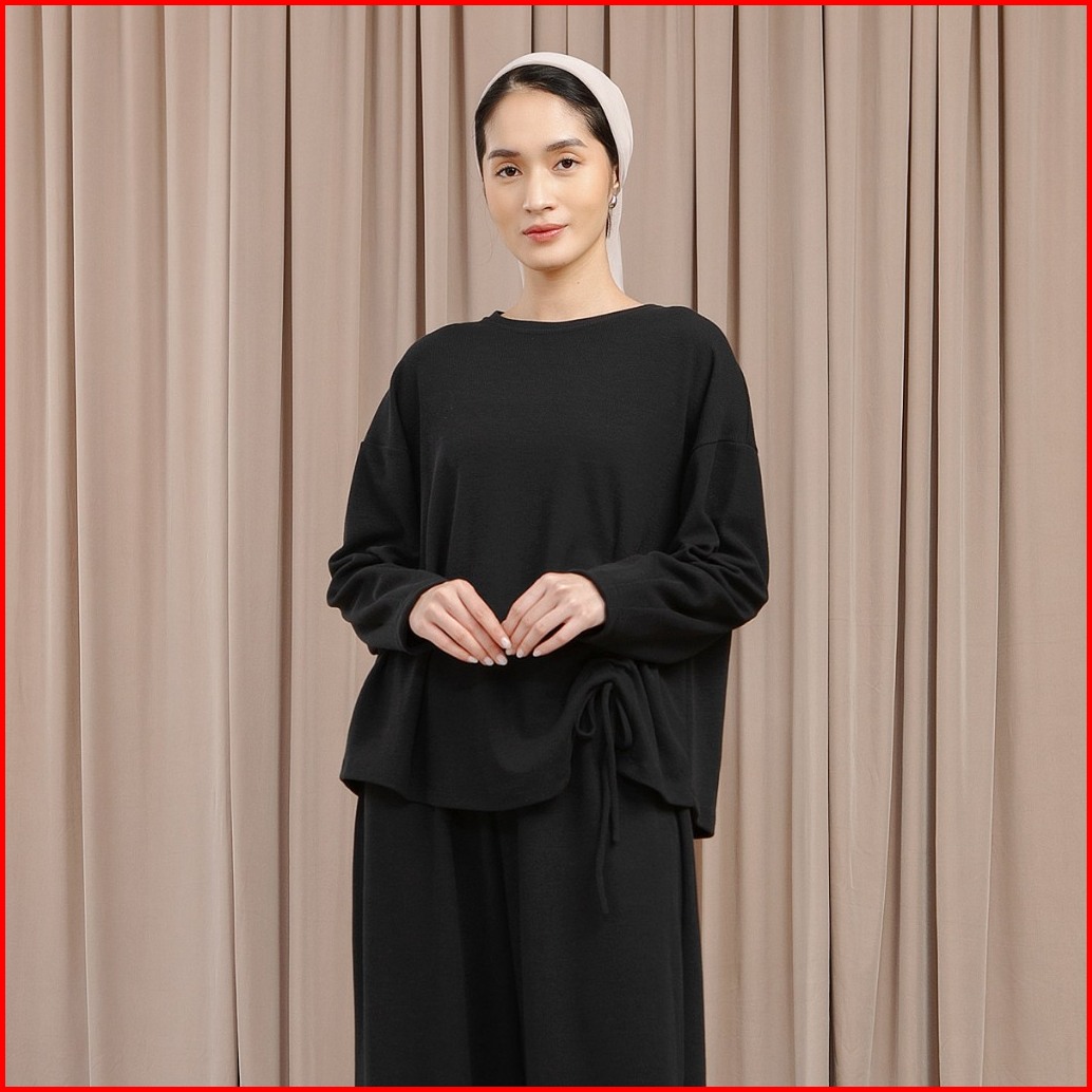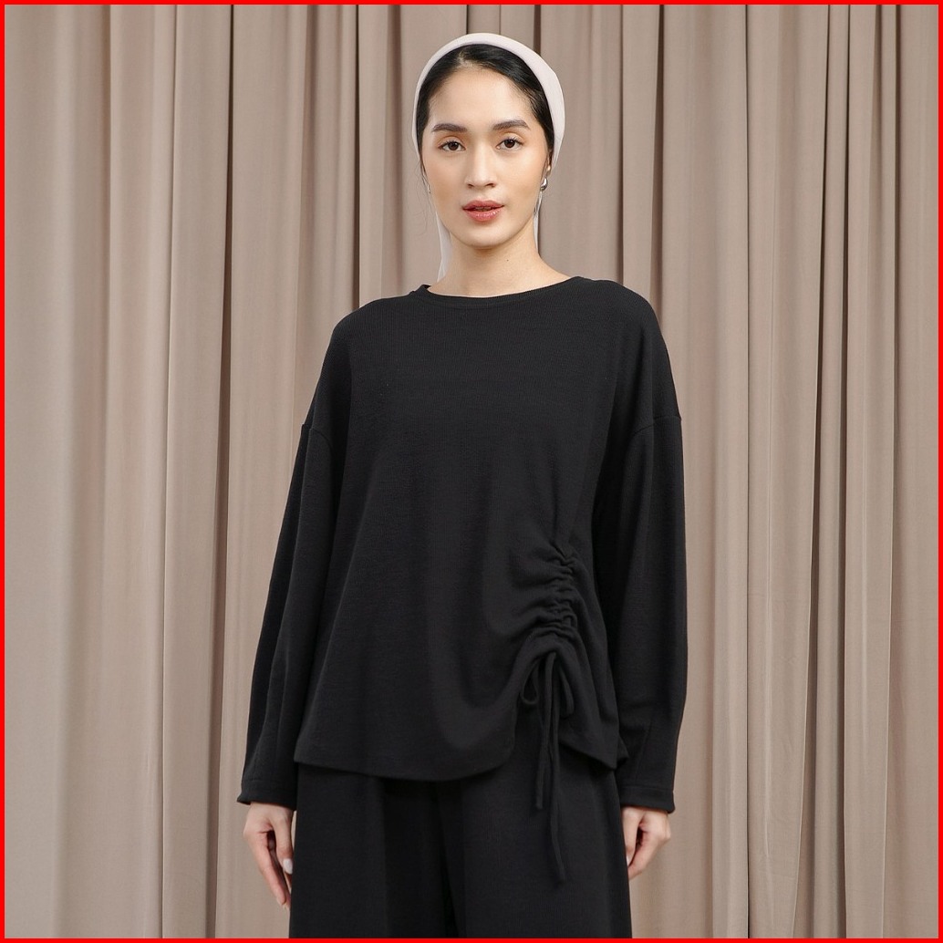 Hijabchic Lona Top - Atasan Knit Lembut Tali Serut Adjustable Slimfit Kerah Crewneck Long Sleeve
