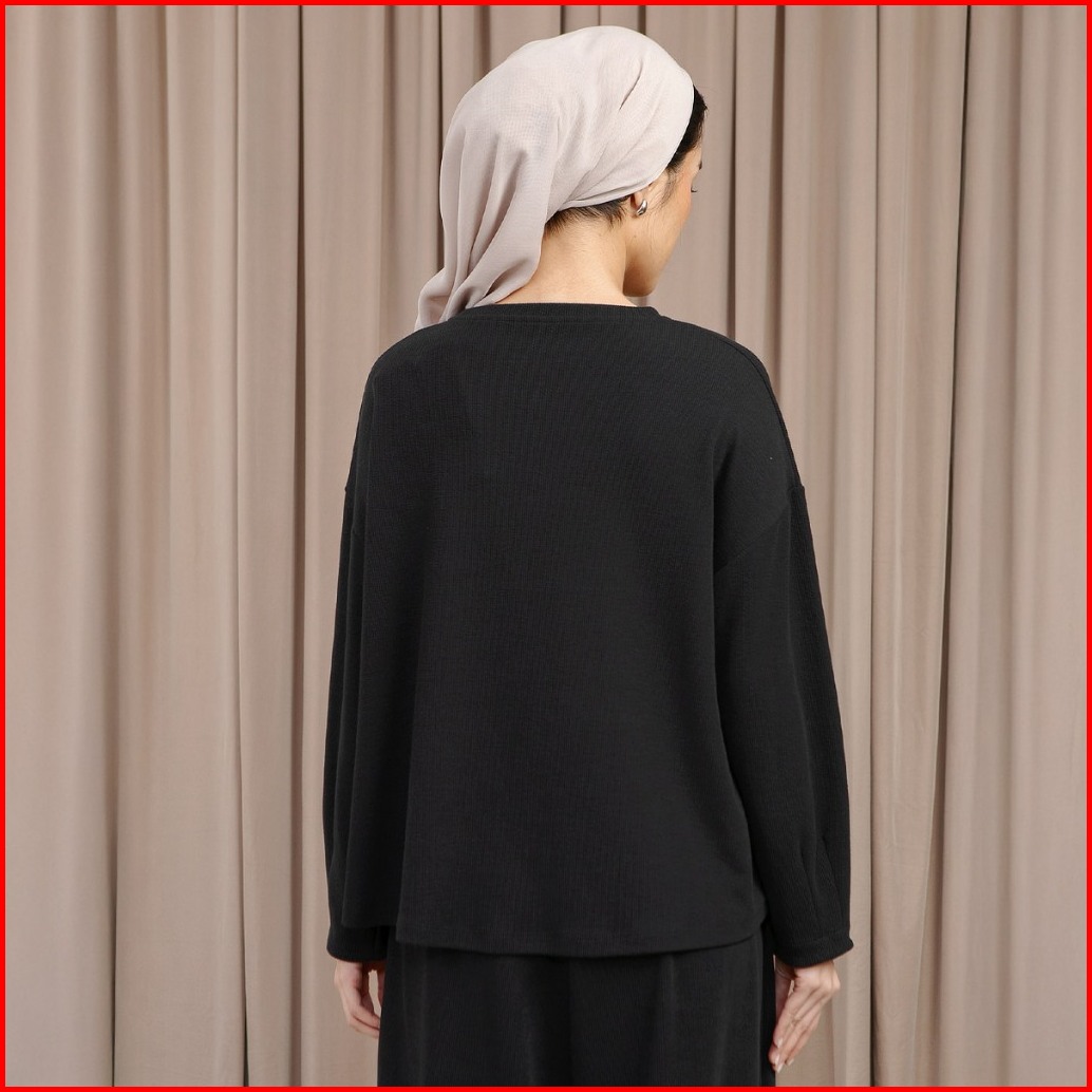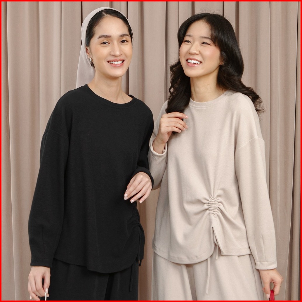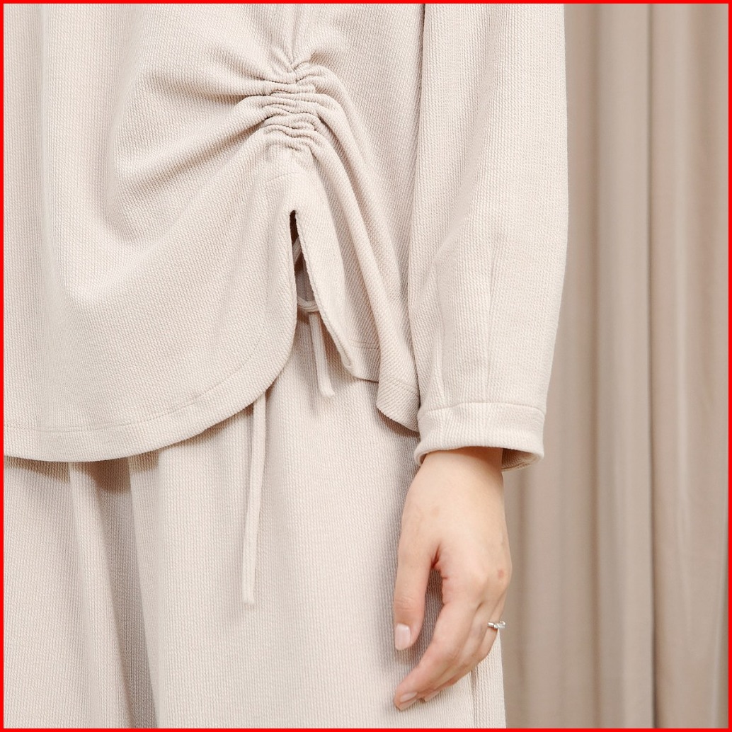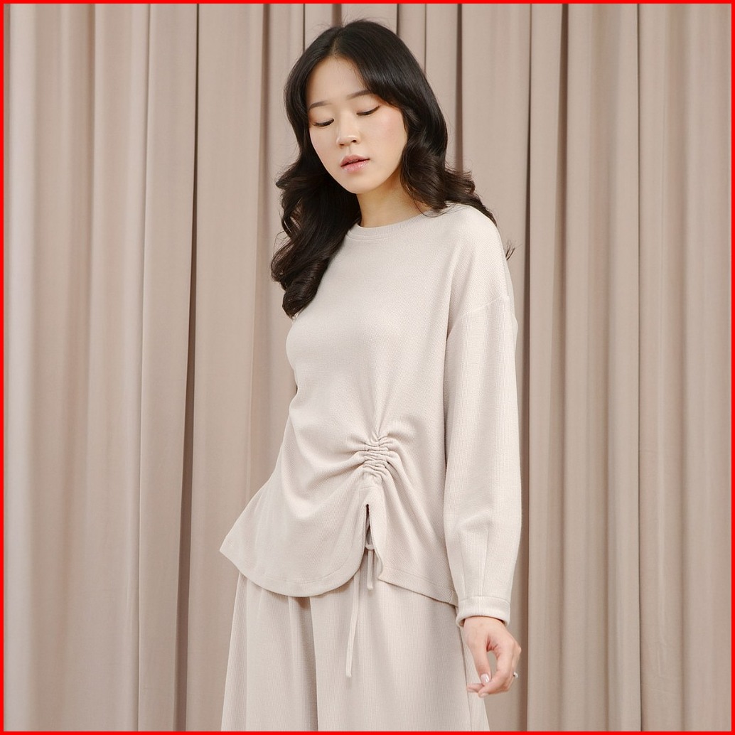 Hijabchic Lona Top - Atasan Knit Lembut Tali Serut Adjustable Slimfit Kerah Crewneck Long Sleeve