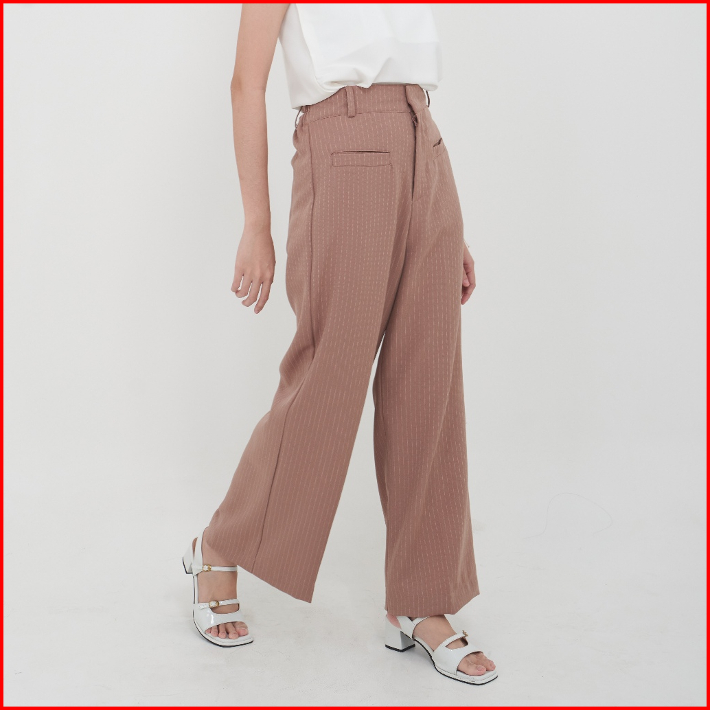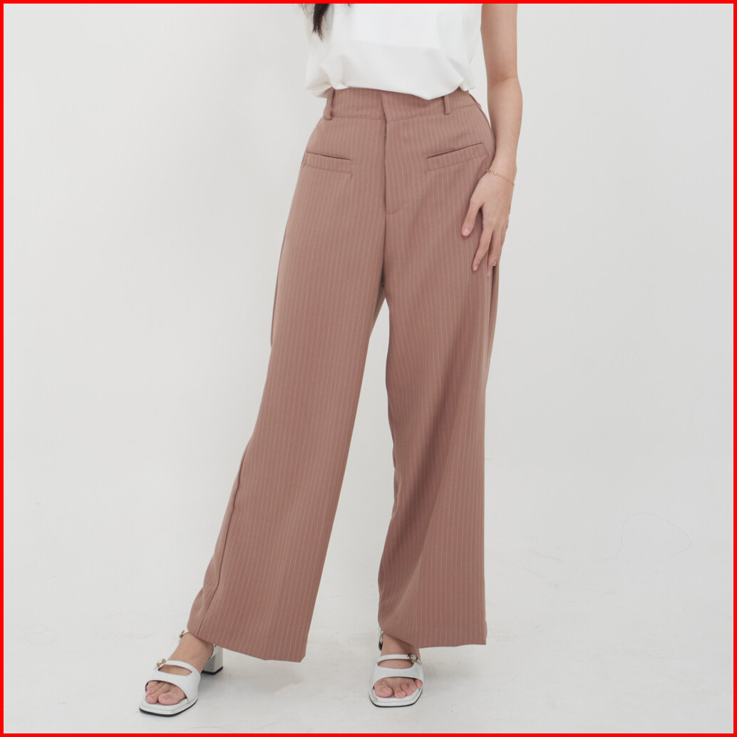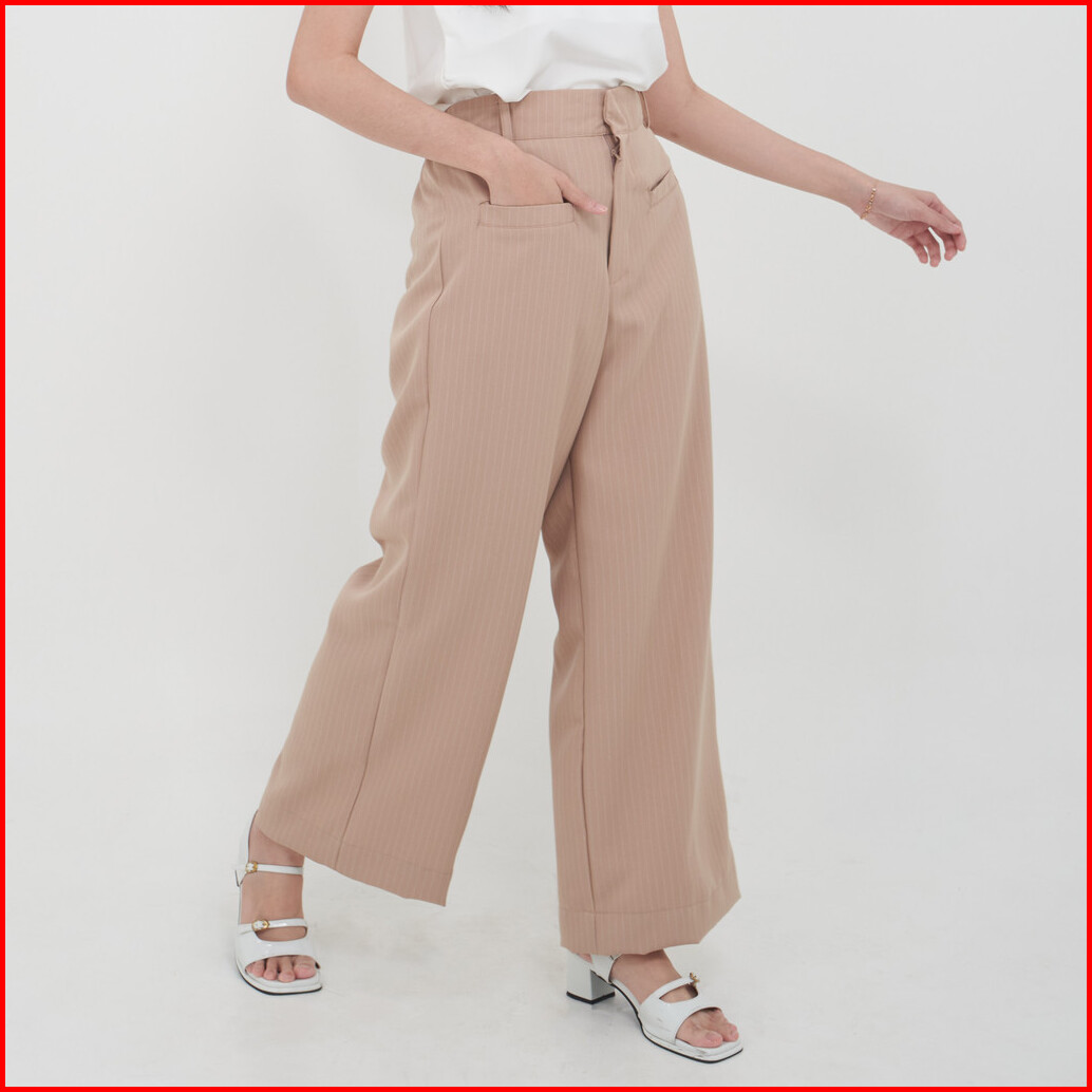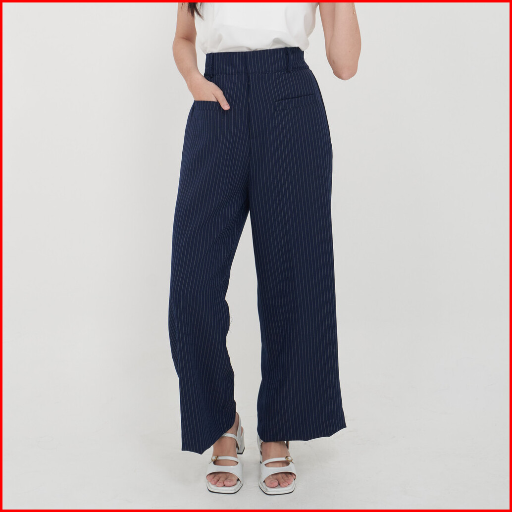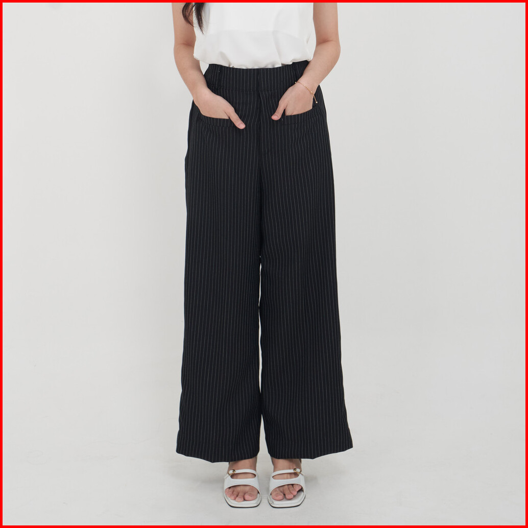 Queentin Celana Wanita Kulot Panjang 0690 Semi Wool Motif Salur