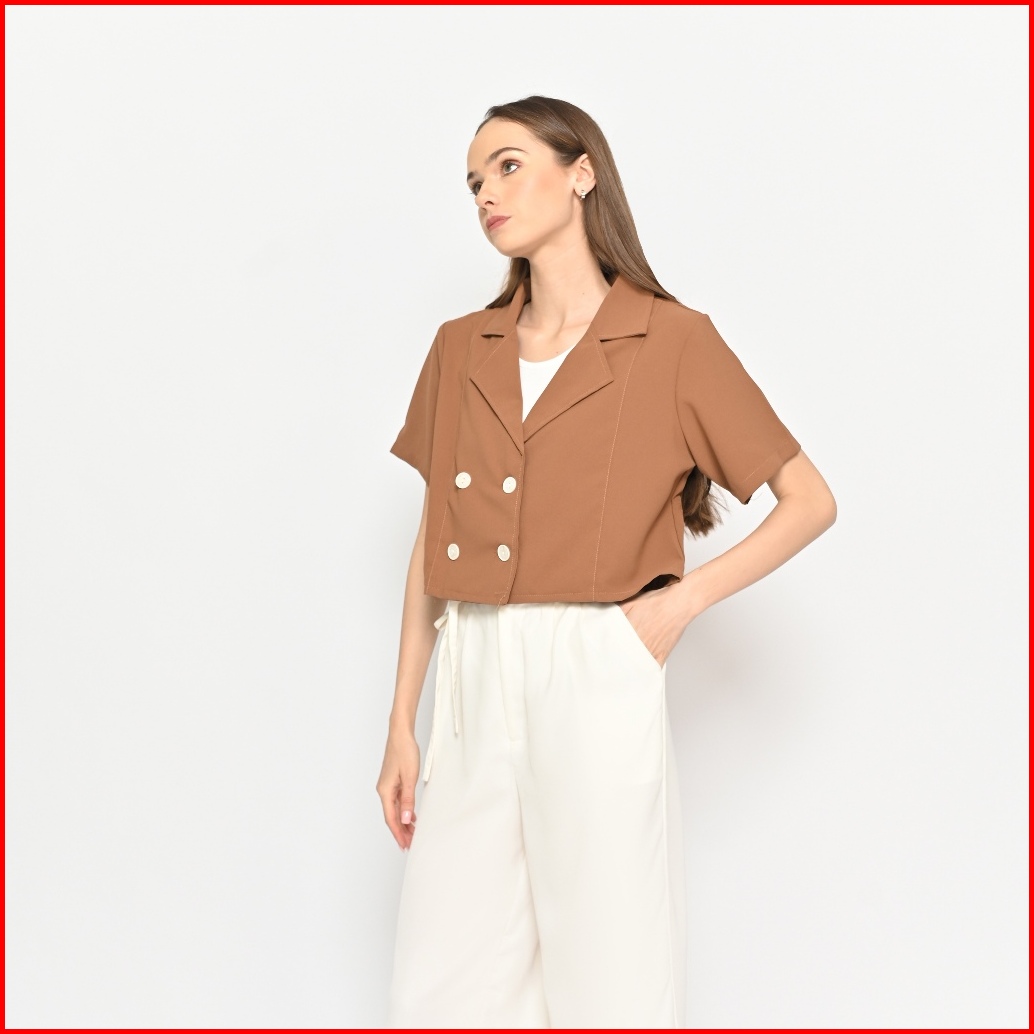 Queentin Crop Blazer Casual Wanita 0163 Katun Zora Polos Premium Lengan Pendek
