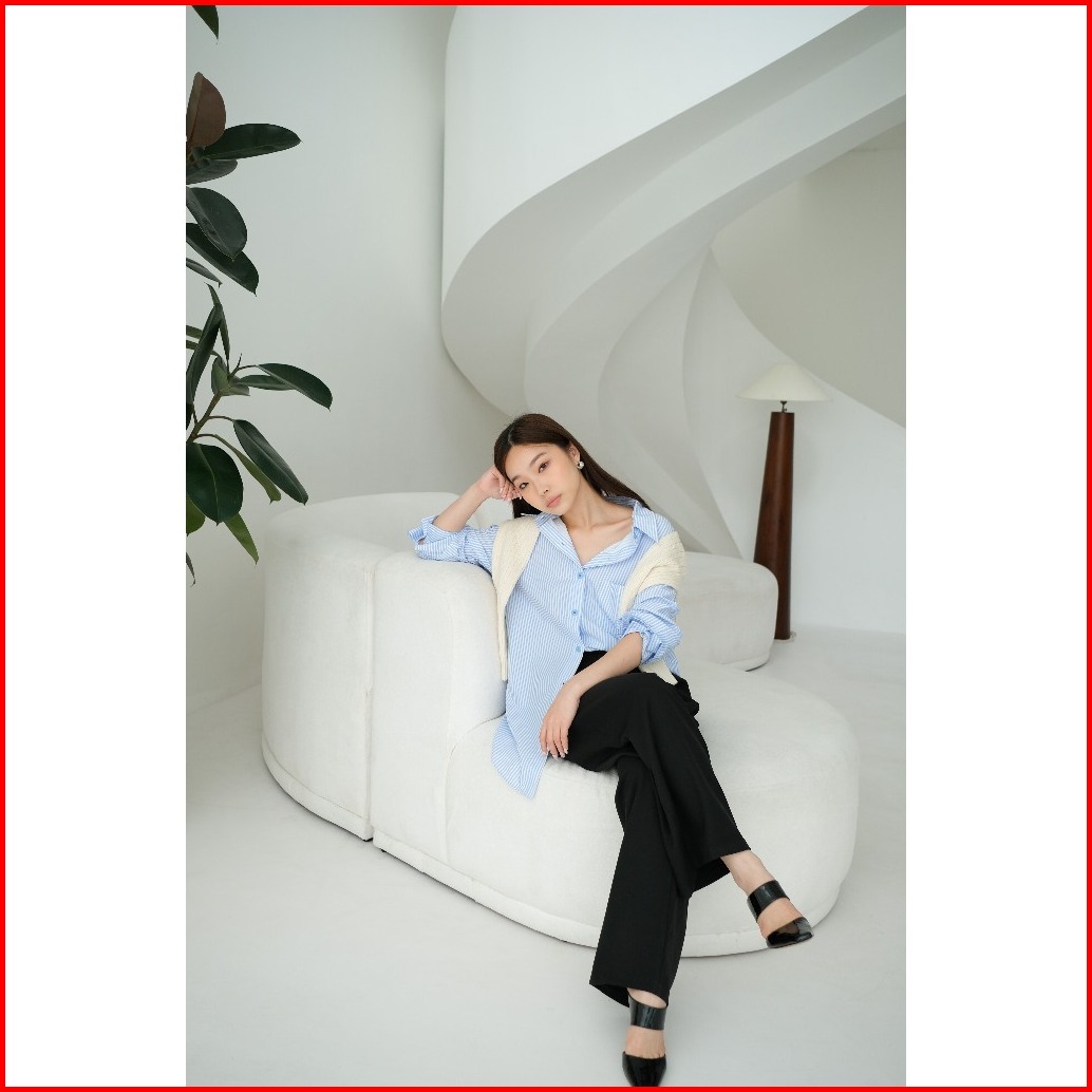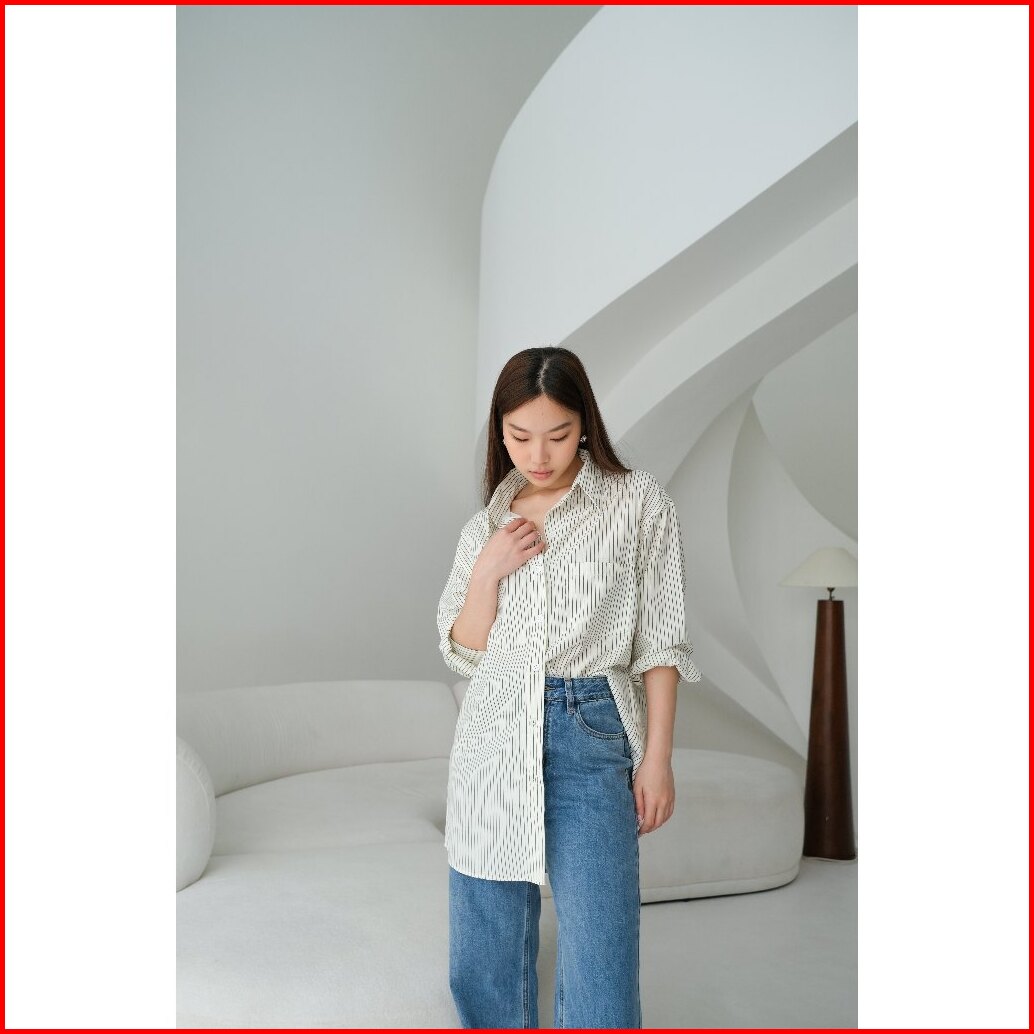 Kiyorawears - Cher Oversize Stripe Shirt Kemeja Oversize Wanita Blouse Kantor Lengan Panjang Kemeja Garis Atasan Wanita
